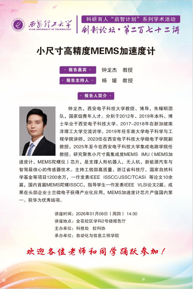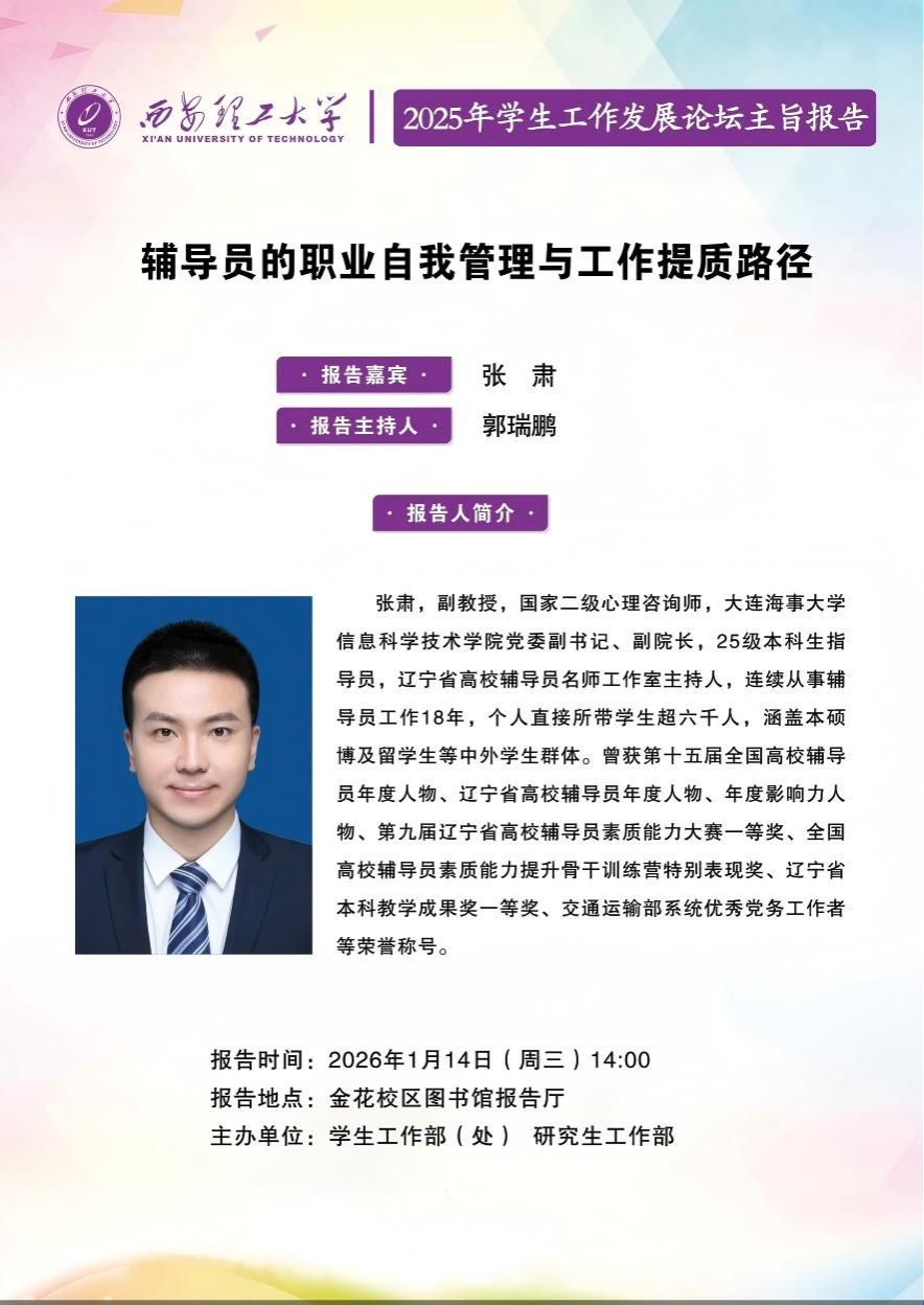 近日,陕西省科学技术厅发布了《陕西省科学技术厅关于公布2025年陕西省中青年科技创新领军人才、科技创新创业人才及2026年青年科技新星入选人员的通知》(陕科人才函〔2025〕355号),beat365官网6位教师成功入选。材料科学与工程学院贾磊教授、自动化与信息工程学院郭仲杰教授、印刷包装与数字媒体学院孙帮勇教授入选2025年度陕西省中青年科技创新领军人才;水利水电学院董静副教授、自动化与信息工程学院王曦教授、水利水电学院张皎....