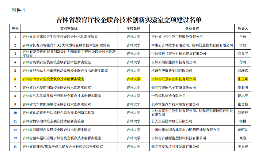 “吉林省节水农业校企联合技术创新实验室”是由吉林省教育厅、吉林省工业和信息化厅于2023年12月批准建设(吉教联〔2023〕94号),与吉林省汇泉农业科技有限公司联合申请创建,隶属于PA集团官网。