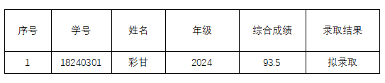 按照学校《关于2025年本科生集中考核转专业学院考核相关安排的通知》《pa集团官网入口2025年本科生转专业工作实施细则》相关要求,经学生申请,资格审核,3月25日学院转专业面试小组对学生进行了综合考核,现将面试结果公示如下: