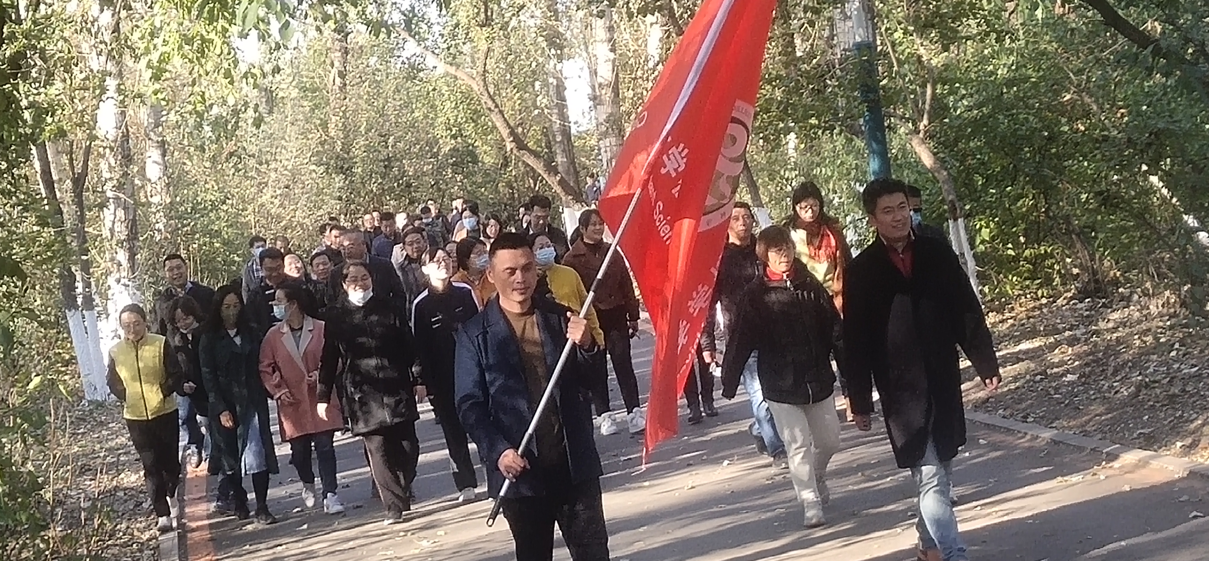 此次徒步活动总里程约为1.5公里,徒步过程中,大家相互交谈工作中的问题和经验,畅谈对生活的感悟和未来的憧憬。尽管气温不高,但丝毫没有影响大家的情绪。他们斗志昂扬,步伐矫健,个个精神抖擞,脸上洋溢着快乐的笑容。近一个小时后,大家抵达终点。