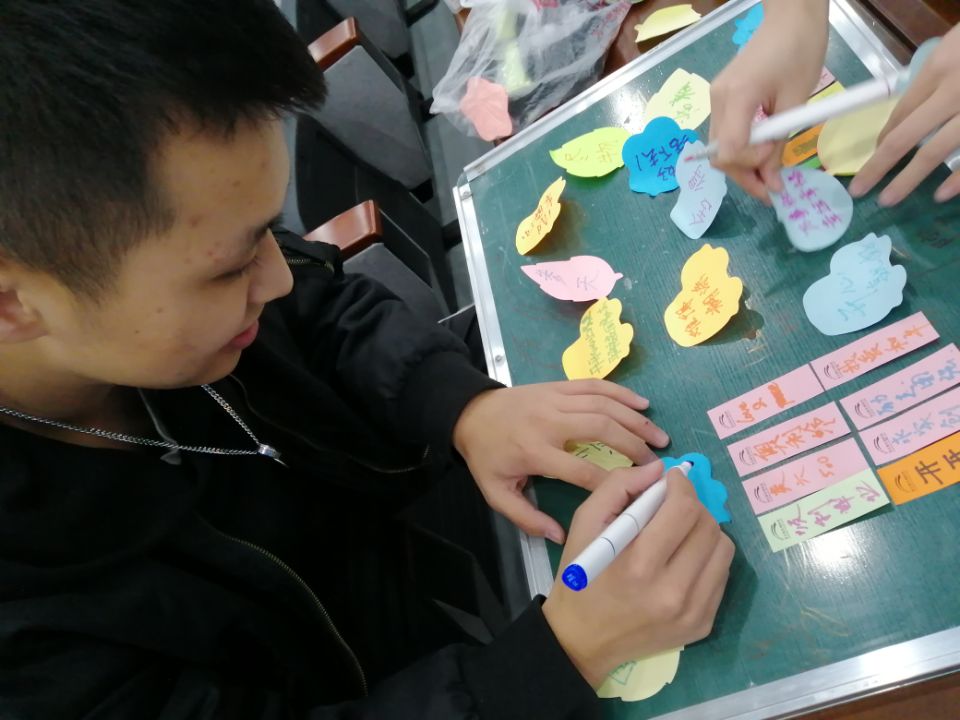此次团体心理辅导活动共分为三个阶段:热身阶段、过渡阶段和结束阶段,每个阶段又分为几个不同的环节。为了让同学们不再拘谨、快速融入,首先在热身阶段进行了“一分钟鼓掌”小游戏,引导同学们交流预期和现实的差距。开始时,大多数同学的预期偏低,这个环节极大增强了同学们的信心。过渡阶段中“信任之旅”环节,同学们群策群力,坚持不懈,通过团队协作达成了目标,提高了小组成员的默契和团队凝聚力。在总结阶段,每位同学写下自己的感受和收获,同他人交换分享,大家都收益匪浅。最后同学们一起合作绘制了“团体树”,并合影留念。至此,本次活动圆满结束。