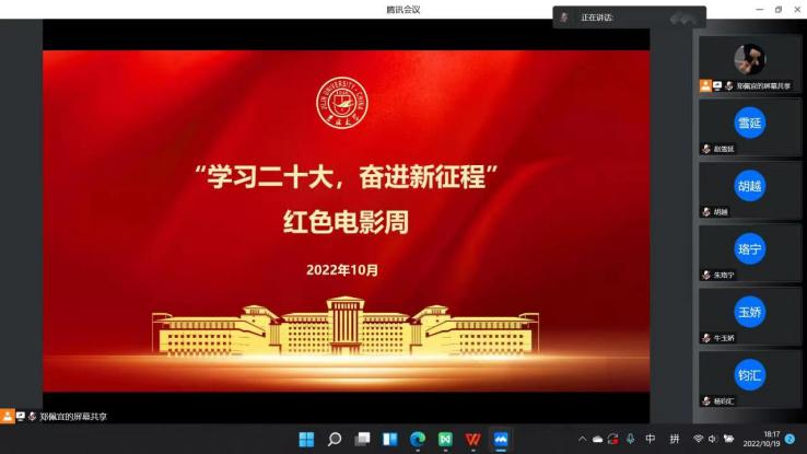 中国共产党第二十次全国代表大会于10月16日在人民大会堂拉开序幕。为全面学习会议精神,pa集团官网入口于10月19日至10月27日开展以“学习二十大,奋进新征程”为主题的红色纪实电影周活动,感受祖国的日新月异。