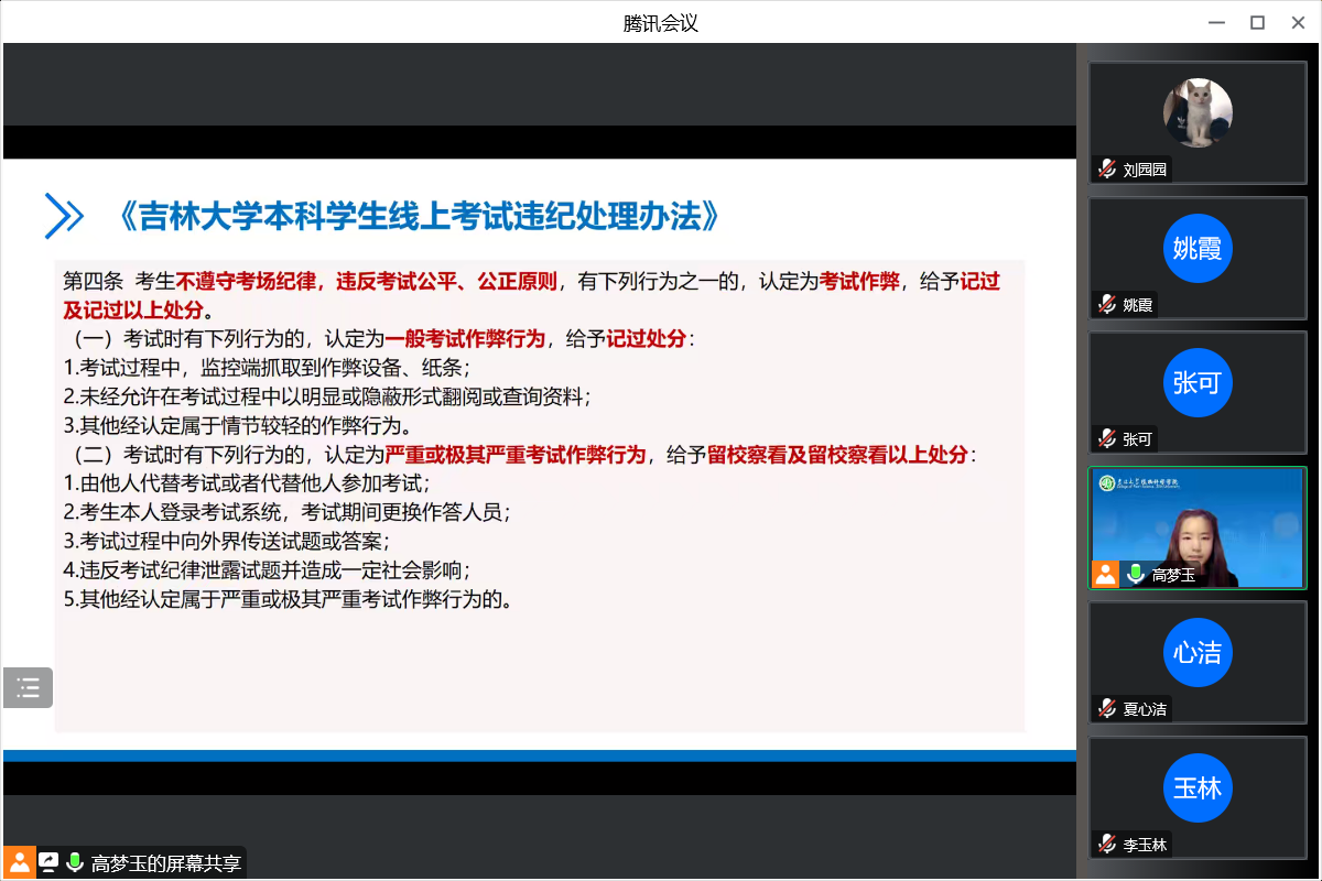 为进一步加强学风、考风教育,严格考试管理,严肃考试纪律,营造文明、诚信考试的良好氛围,提高学生的道德修养和思想素质,12月20日—22日,pa集团官网入口各年级召开考风考纪教育大会。会议由2019级、2020级辅导员曾光,2021级、2022级辅导员高梦玉主持,各年级全体本科生线上参会。