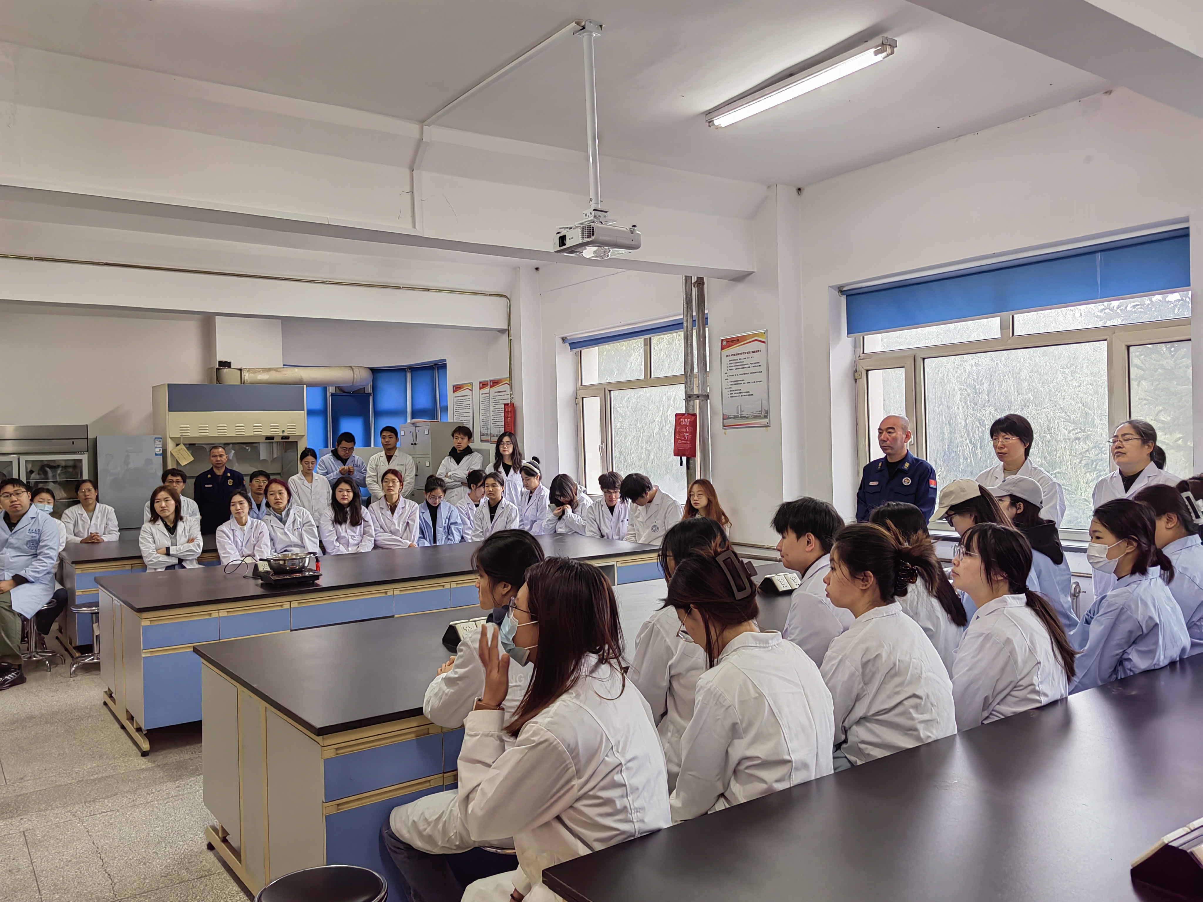 实验教学中心韩红爽向参训人员讲解实验室环境下安全管理常识,重点围绕危化品使用管理、易发火灾防患、常见消防设备使用等开展培训。培训现场,模拟仪器设备电路故障、初期火灾扑救等场景,组织参训人员进行灭火演练和疏散逃生。西区保卫办公室任亚峰围绕校园内消防安全隐患整治和防范进行讲解,并提出工作要求。