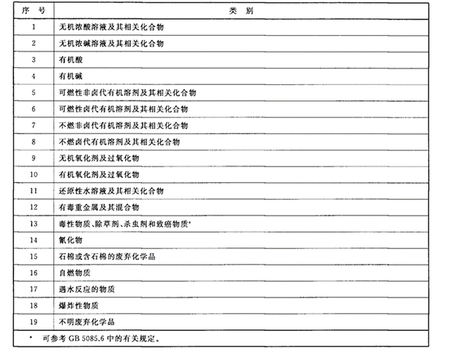 实验过程中产生的废弃化学品分类表