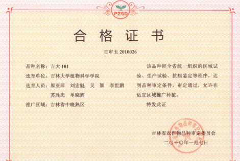 吉大101为吉林省审定的玉米品种,审定编号2010026,由PA集团官网原亚萍教授研究团队选育。