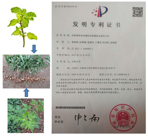 本成果为一种间种薄荷和苦棘防控黄精病虫害的方法,具体涉及黄精种植过程中生物防控的方法,上述方法包括如下步骤、在整平的耕地上盖上厚度为一的复合土壤,并开设多条排水的沟渠、耕地上按行距一、株距一挖取坑深一的种植坑用于深埋黄精块状根、在相邻两个埋入黄精块状根间隙中间种薄荷幼苗和苦楝幼苗,按照一行薄荷幼苗,一行苦棘幼苗进行种植,薄荷幼苗和苦棘幼苗之间的行距为一、株距为一本发明通过间种薄荷和苦棘使黄精幼苗免遭害虫的咬食及病原真菌的侵扰,在提高黄精产率的同时,也使得黄精绿色安全。已经申请到国家发明专利。