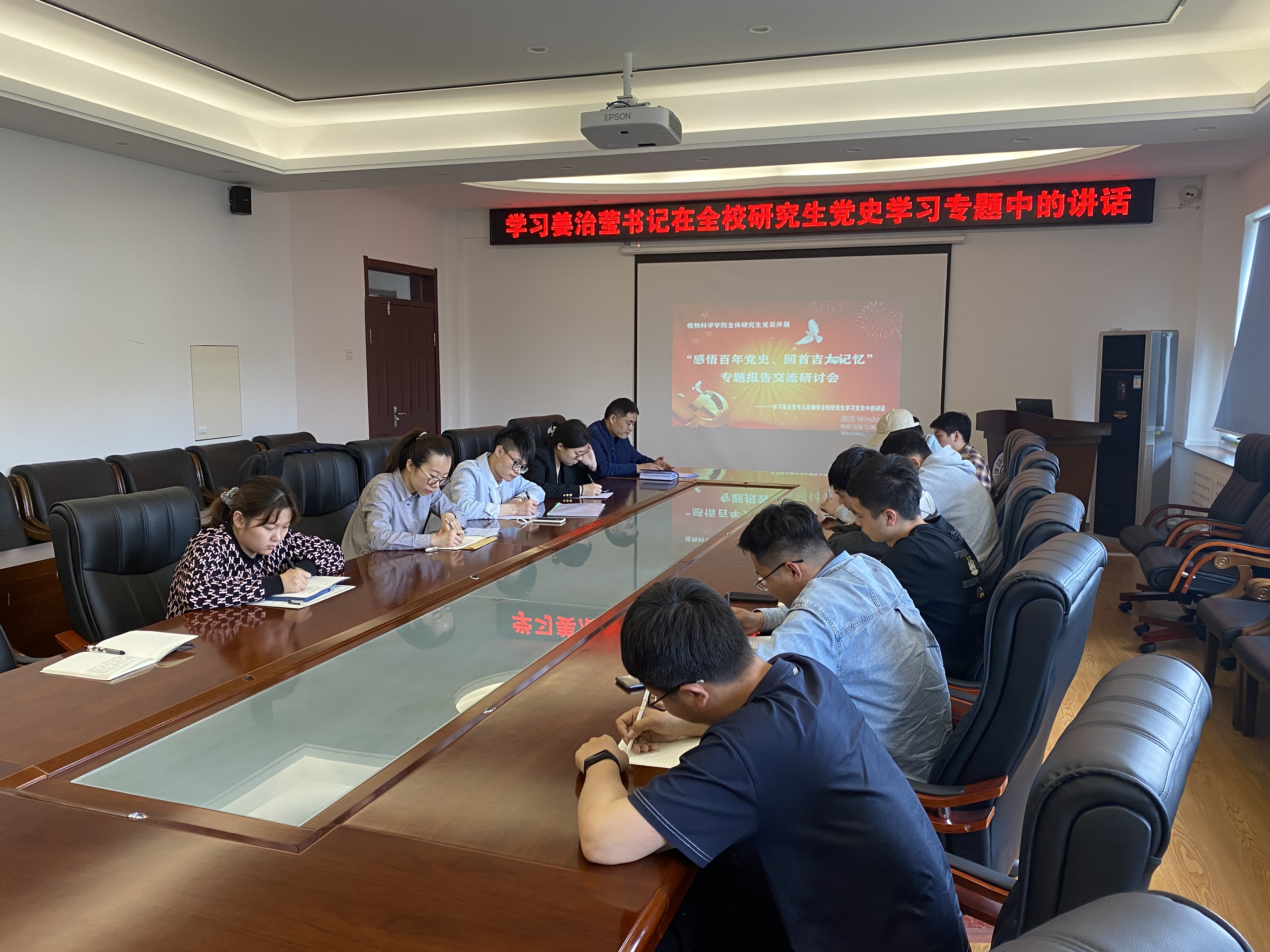 为迎接中国共产党成立100周年,落实党中央关于在全党开展党史学习教育的工作部署,让广大研究生更好地学党史、知校史,更深入了解学校先贤与党同心、与国同行的故事,贯彻落实校研究生工作部召开的“感悟百年党史 回首吉大记忆”研究生党史学习教育专题活动精神,pa集团官网入口于2021年6月3日下午14:00,在学院四楼会议室召开了“感悟百年党史、回首吉大记忆”专题报告交流研讨会,学院研究生辅导员邓松、研究生党员代表和研究生干部代表等人出席了会议。