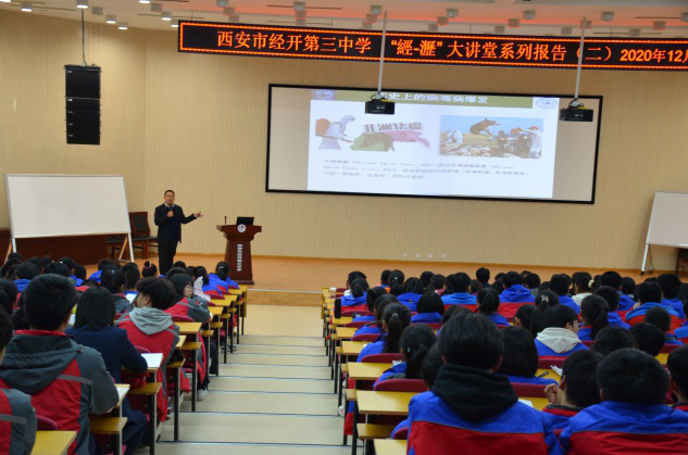 在短短的4天时间,在西安市经开三中“經•瀝”大讲堂经开三中常务副校长郑宏宝及400余名学生面前、在西安市第八十九中学报告厅教务处陈立鹏主任和高三文理科毕业班学生200余人面前、在西安中学招办吕铎和高三年级文理科实验班班主任面前、在西工大启迪中学会议室及多媒体教室王万斌校长等领导和120余名优秀学生面前,学院招生工作小组共进行了4场“筑梦起航在吉大”招生宣传专题演讲,此外,专家们分别作了题为“病毒与人类”、“车辆系统动力学仿真分析研究”科普讲座。同时,分别向除西安中学外的其他三所中学授予“PA集团官网优生源基地”牌匾。