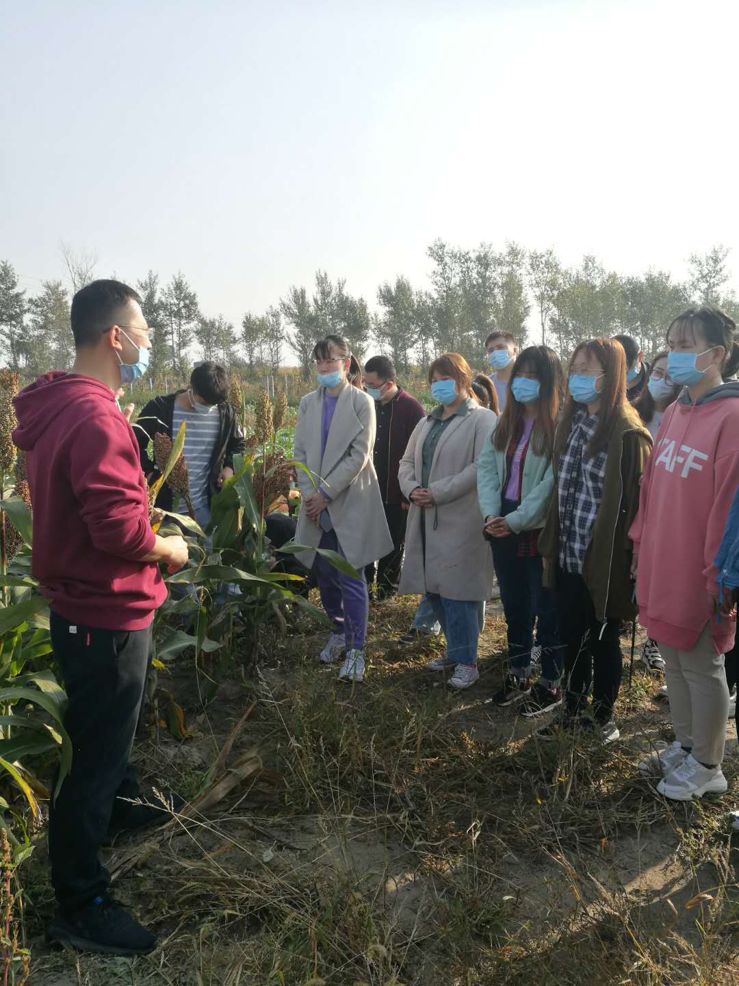 9月26日上午,同学们在禾谷类杂粮作物试验示范基地里直观地观察了不同品种高粱的性状。在试验田中,刘宏魁老师讲述了几种不同的育种方法及优缺点,同时,提到田间试验的一些相关内容。鞠会艳老师则重点讲述了植物营养的几种缺素症状,就地取材介绍了磷元素缺乏会使植株叶片呈现紫红色。