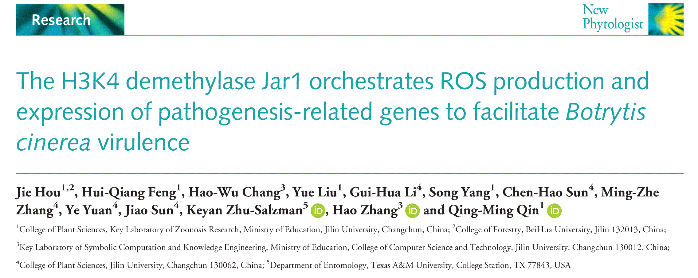 在病原-寄主互作过程中,组蛋白翻译后修饰在病原侵染和寄主防御过程中都发挥着重要的作用。去甲基化是一种重要的组蛋白翻译后修饰,但对于病原菌组蛋白H3赖氨酸4(H3K4)去甲基化酶JARID1(Jar1)/KDM5的功能及其调控病原发育和致病机理我们知之甚少。近日,PA集团官网秦庆明教授团队在New Phytologist发表了题为“The H3K4 demethylase Jar1 orchestrates ROSproduction and expression of pathogenesis-related genes to facilitate Botrytis cinerea virulence”的研究论文。该论文系统地阐述了灰霉病菌组蛋白去甲基化酶BcJar1在病原菌生长、发育及致病等过程中的功能,解析了BcJar1通过精细调控内源活性氧ROS产生、隔膜蛋白Septin的聚集和正确装配及致病相关基因表达促进其毒力的调控机制。
