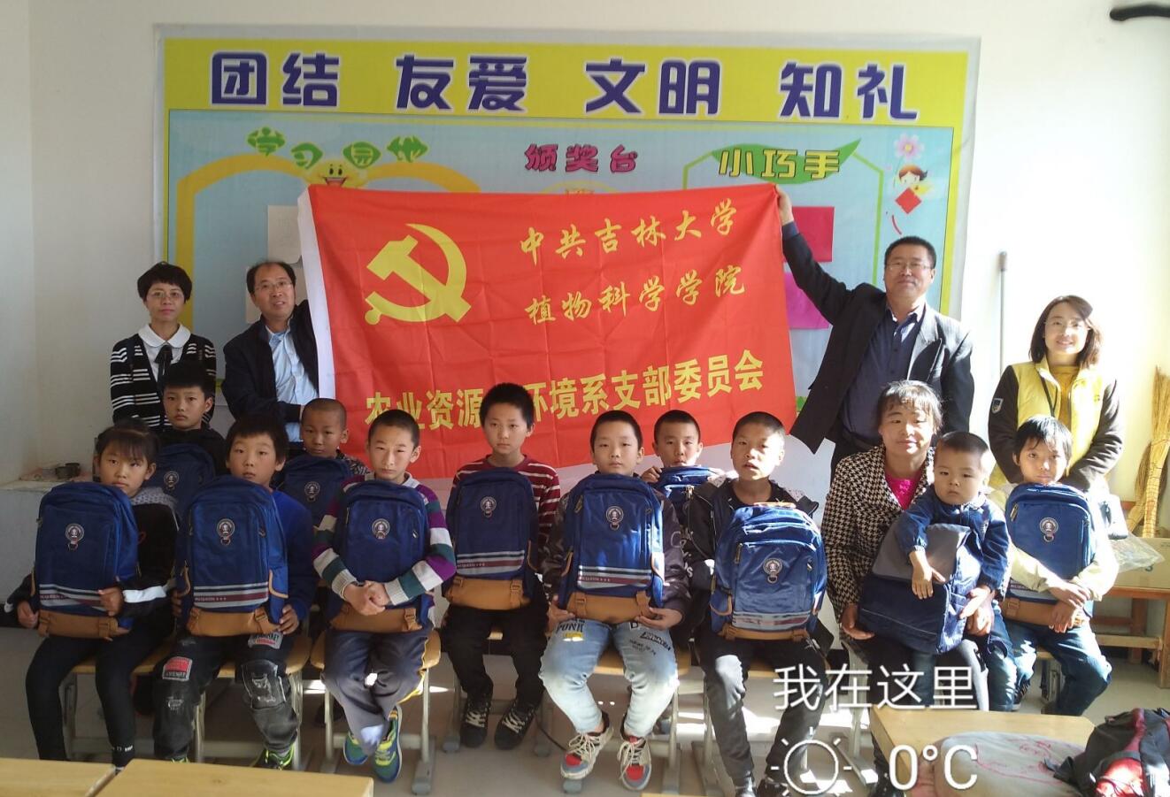 10月11日,农业资源与环境系教工党支部一行4人,驱车120余公里来到帮扶地点——农安县三盛玉乡大岗村小学校,开展“送温暖、献爱心”主题党日活动。由于农村学校学生流失严重。三盛玉乡大岗村小学原本是能容纳上百人的学校,现如今在校生数量仅为11人,这些孩子大多来自于贫困家庭或留守儿童,有的小朋友一个书包从一年级用到六年级,已经千疮百孔。为此,农业资源与环境系教工党支部为小朋友们准备了书包、文具盒、彩色绘画笔、课外读物等爱心物品,还为老师们送上教具。孩子是祖国的未来,民族的希望,帮扶孩子就是在培育明天。