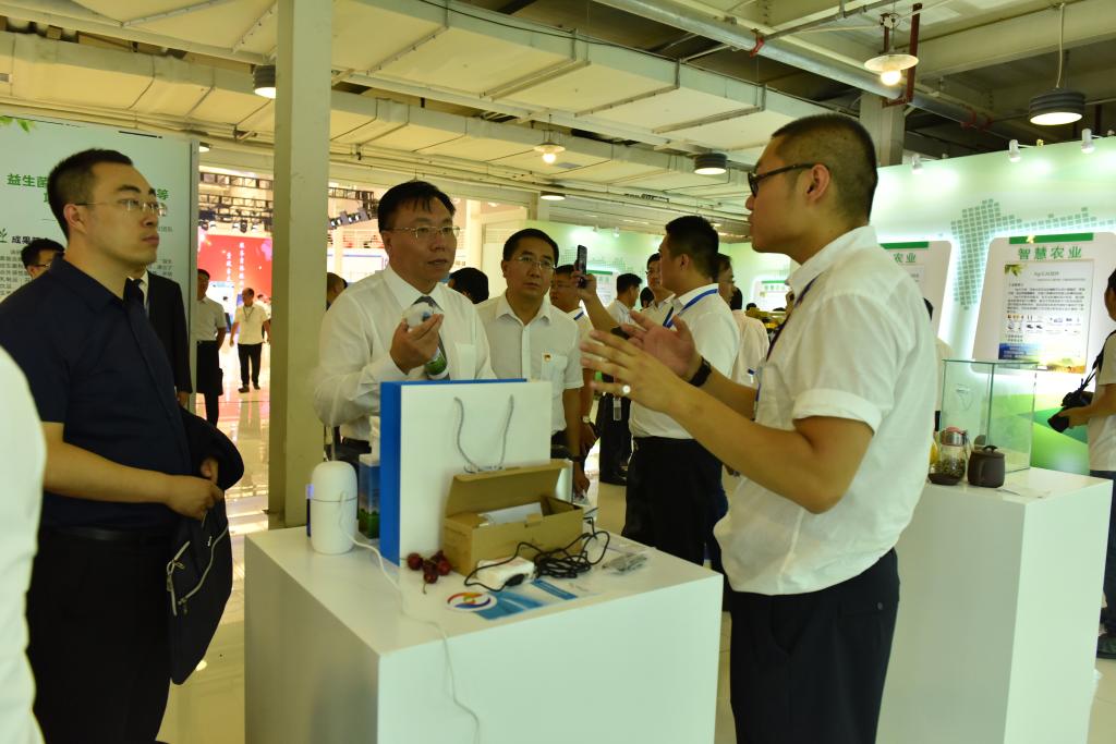 会议结束后,部分企业代表前往PA集团官网科技成果展区,与学院教师一道携部分校企合作成果迎接教育部及省政府领导参观。