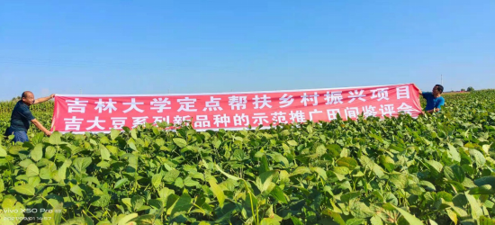 2021年9月1日,pa集团官网入口在通榆县召开“PA集团官网定点帮扶乡村振兴项目吉大豆系列新品种示范推广田间鉴评会”。通榆县副县长田进、县农业局副局长杜白龙、县种子管理站站长张波、学校乡村振兴办公室副主任汤文庭、王庆钰教授课题组等相关人员参会。