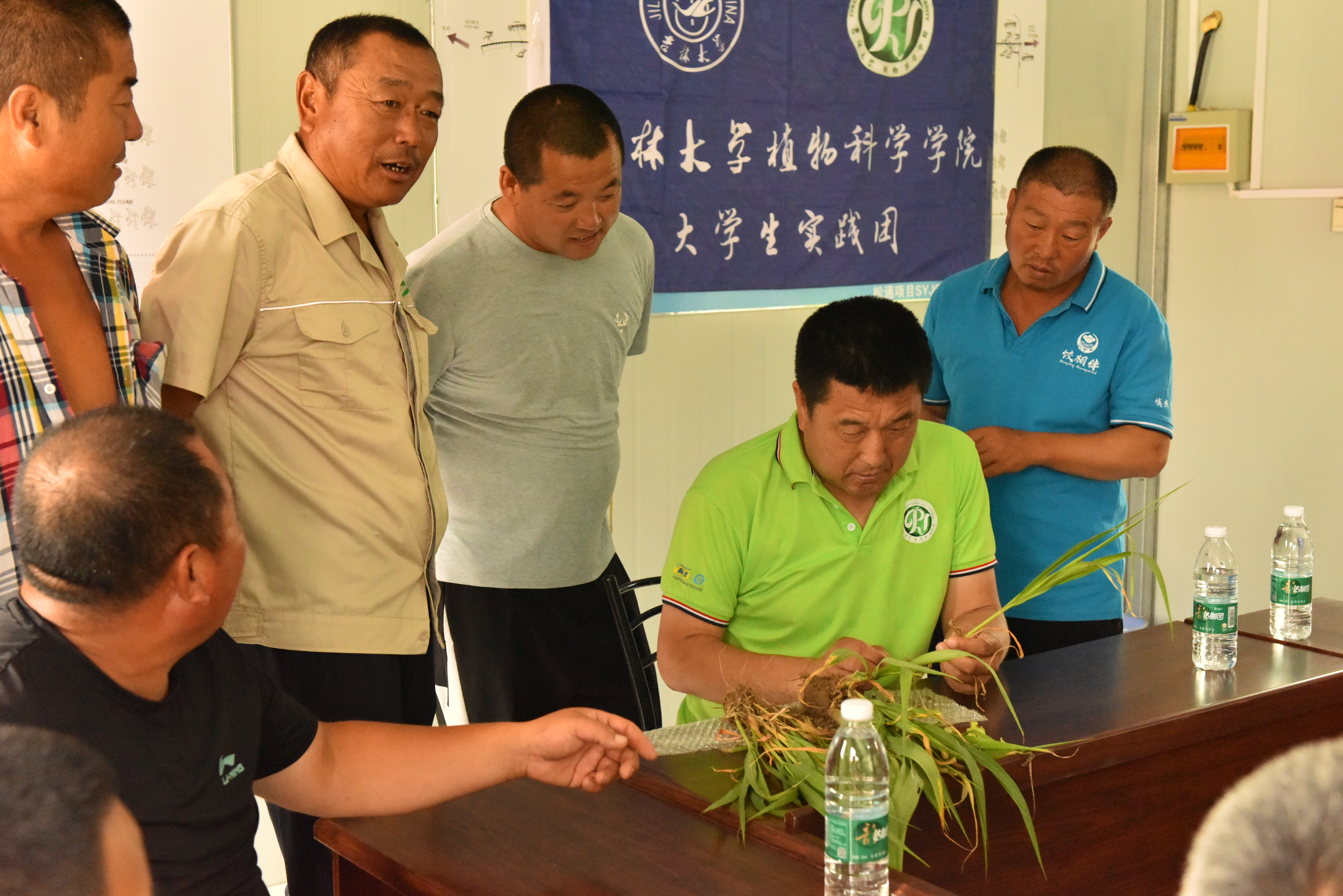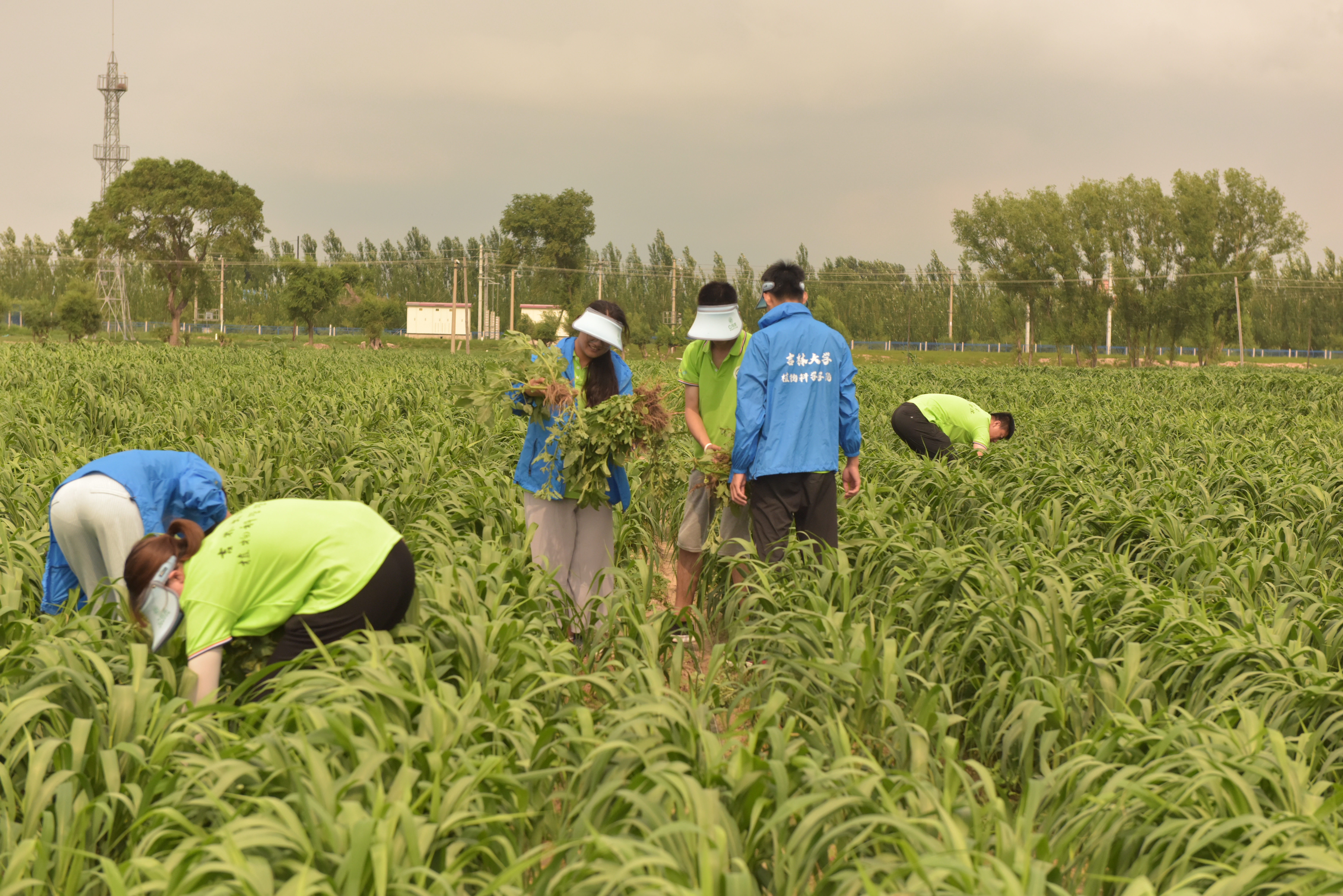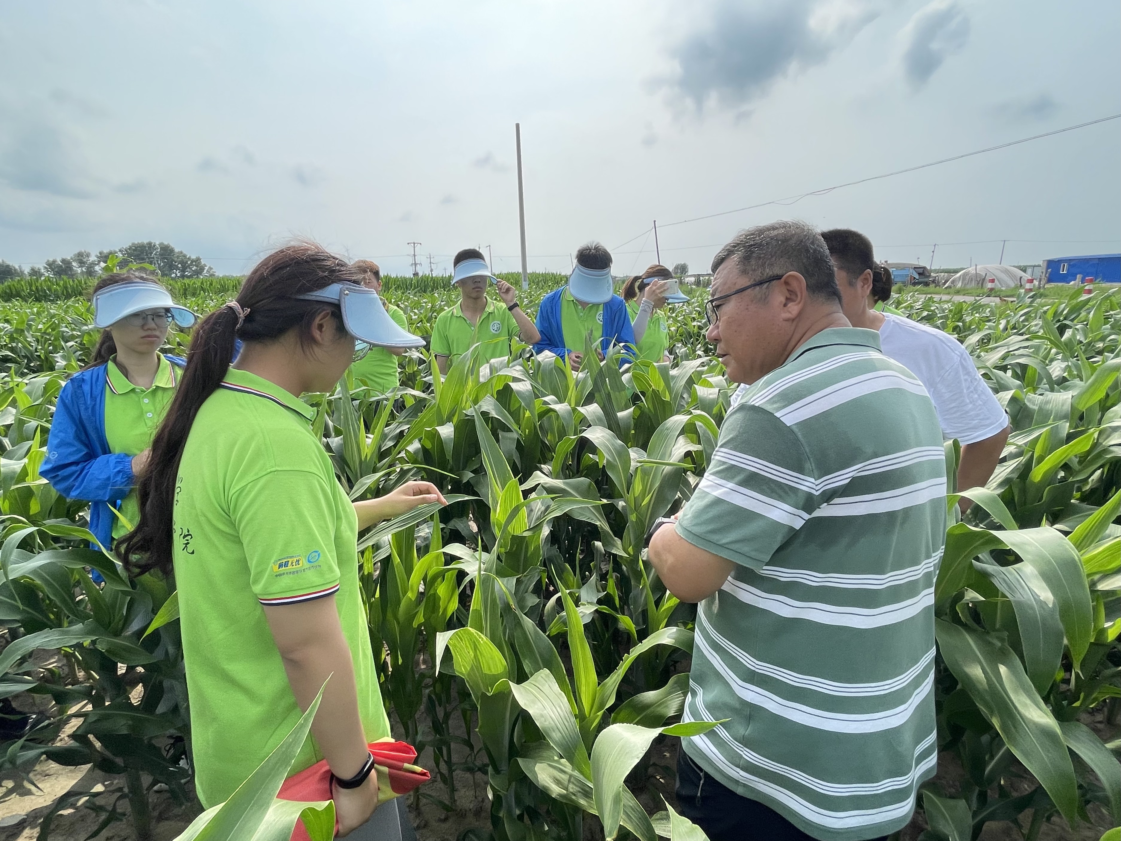 随后,实践团来到PA集团官网崔金虎教授的试验田进行参观学习。近年来,崔金虎教授为当地农民提供优质种子,结合专业知识对农民进行技术指导,将脱贫攻坚工作开展到田间地头,亲自为农民授课,积极参与并推进县乡农技人员的继续教育,真真切切地把科研成果应用在田间,把国家的相关政策落实到每家每户,极大的提高了当地农作物的产量以及质量,解决了当地农业发展中存在的诸多问题。在崔金虎教授的指导下,实践团的同学们深入实验田间进行除草,热辣的阳光炙烤着同学们,一颗颗汗水从额头滑过砸在泥土中。除草活动结束后,崔金虎教授为同学们详细讲解浅埋滴灌水肥一体化技术,应用此技术成功实现补水和施肥的高效精准。崔教授亲切地与同学们进行交流,他希望同学们作为农科专业学子,要对农业有情怀、有奉献精神,继承发扬吉大学子最为朴素真挚的家国情怀,真正将科研成果写到田间地头,致力农业发展,助力乡村振兴。