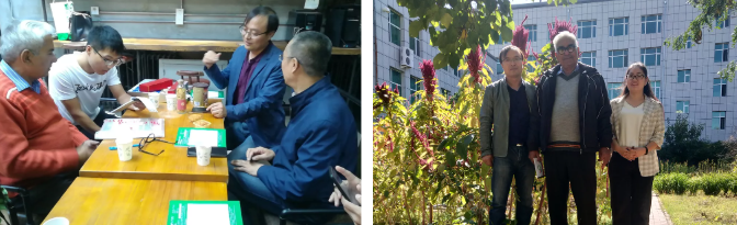 ▲秦建春教授与世界化感权威专家交流