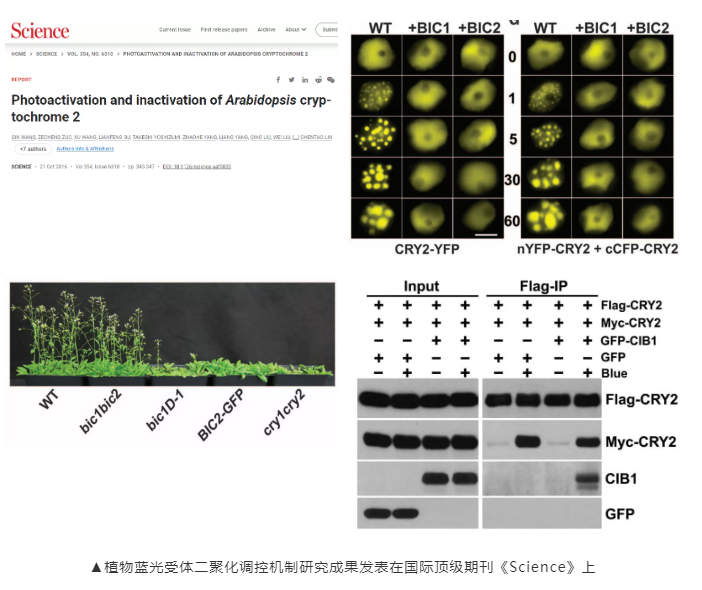 ▲植物蓝光受体二聚化调控机制研究成果发表在国际顶级期刊《Science》上
