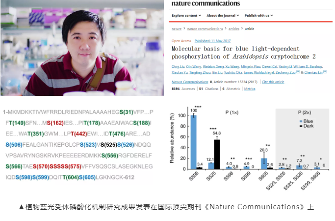 ▲植物蓝光受体磷酸化机制研究成果发表在国际顶尖期刊《Nature Communications》上