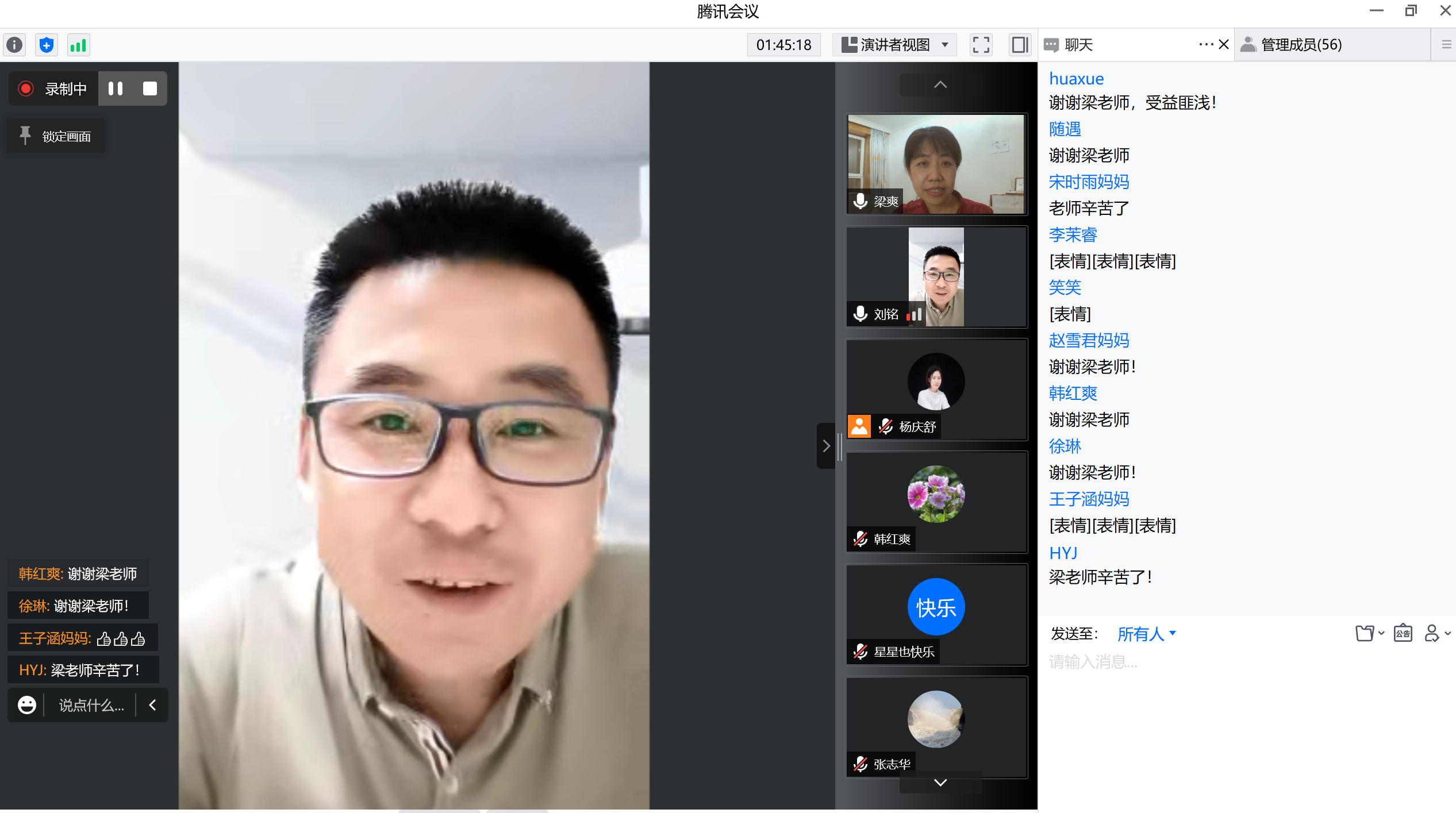 会上,梁爽老师用渊博的专业知识、丰富的教育教学经验、精妙的语言表述,详细分析了孩子在幼小衔接段、小学低年级段、中年级段和高年级段的学习和心理特点,讲解了父母应该如何助力孩子的成长,如何为孩子提供有效陪伴,并就如何做一名“好家长”给出了建议。最后,梁爽老师还就家长关心的问题与参会人员互动交流。