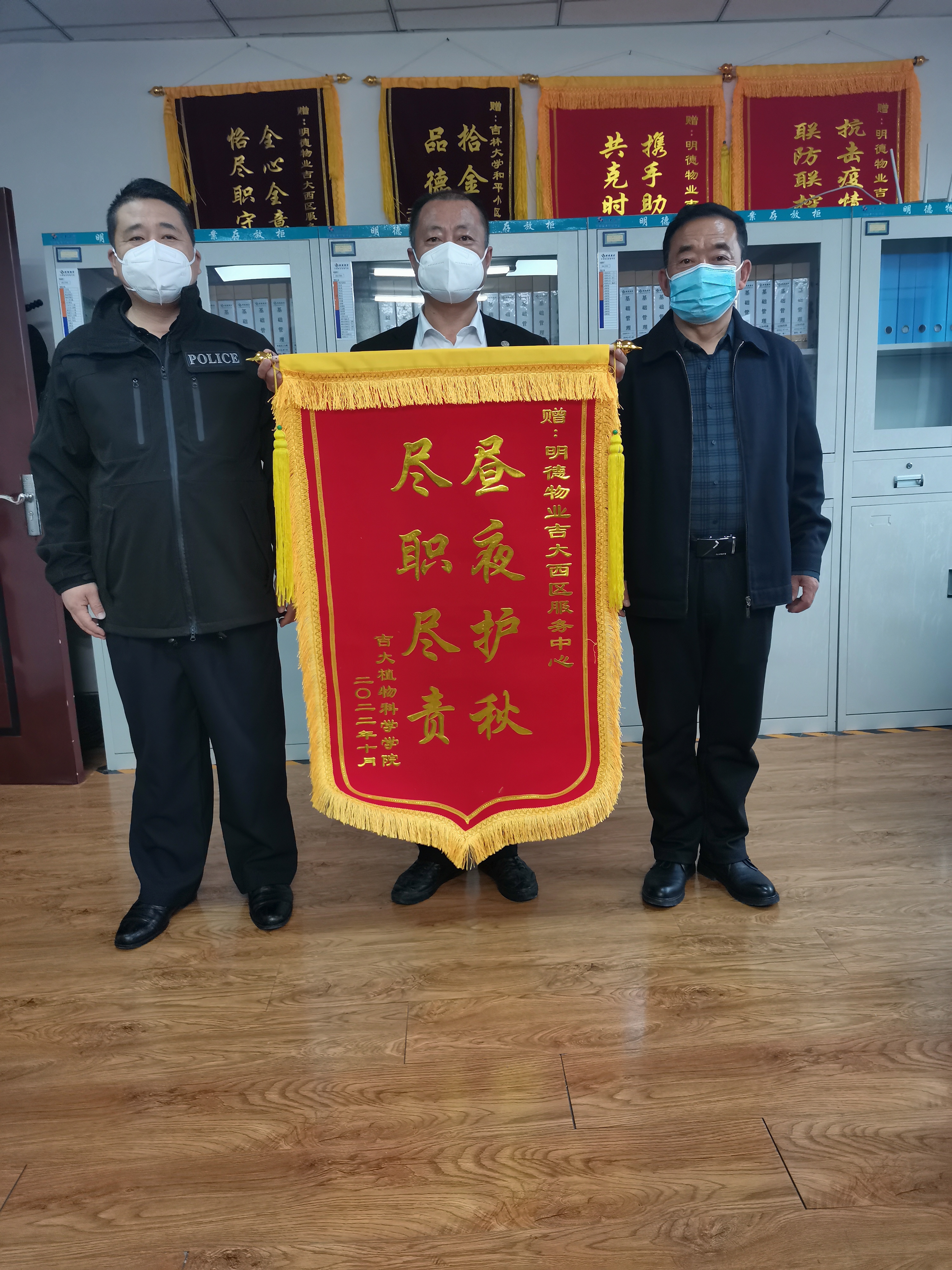历时近2个月,PA集团官网明德物业西区服务中心在不影响日常安保执勤任务的前提下,抽出4名警力24小时不间断地对试验田进行巡逻看管,白天队员用电瓶车巡逻,晚上由于气温较低,用巡逻车巡逻。pa集团官网入口韩俊友副院长和基地唐明祥主任一致表示,往年秋收出现的成熟试验材料被盗、被抢等现象没有出现,有效地保障了正常教学和科研数据的可靠性。明德物业西区服务中心的工作得到了学院一致好评。26日上午,唐明祥主任代表学院为明德物业西区服务中心送来了锦旗,以表达诚挚的谢意。