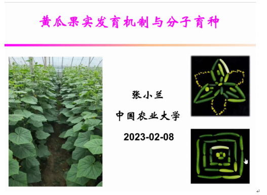 党的二十大报告指出:建设农业强国,强化农业科技支撑。pa集团官网入口立足专业特点,深入开展学科交叉,推动学科建设。2023年2月8日晚7:00,学院牵头成立的学科交叉卓越团队园艺一组成员、中国农业大学园艺学院副院长张小兰教授应邀做了题为“黄瓜果实发育机制与分子育种”的学术报告。该报告是学科交叉卓越团队系列报告第32讲,由团队副秘书长PA集团官网园艺系主任边少敏教授主持。