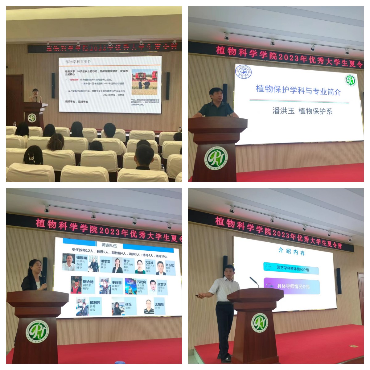 下午,在植科楼二楼报告厅,王英教授、潘洪玉教授、边少敏教授、曹宁教授、原亚萍教授分别对作物学科、植保学科、园艺学科、农业与资源环境学科以及吉林省作物育种实验室进行了详细介绍,同时左泽乘教授也介绍了光与植物生长发育的关系。同学们对学院不同学科和老师的研究方向有了更为深入的了解。之后,针对感兴趣的研究方向,同学们分别去感兴趣的团队实验平台学习,与意向老师进行了深入的交流,初步达成了保送意向。