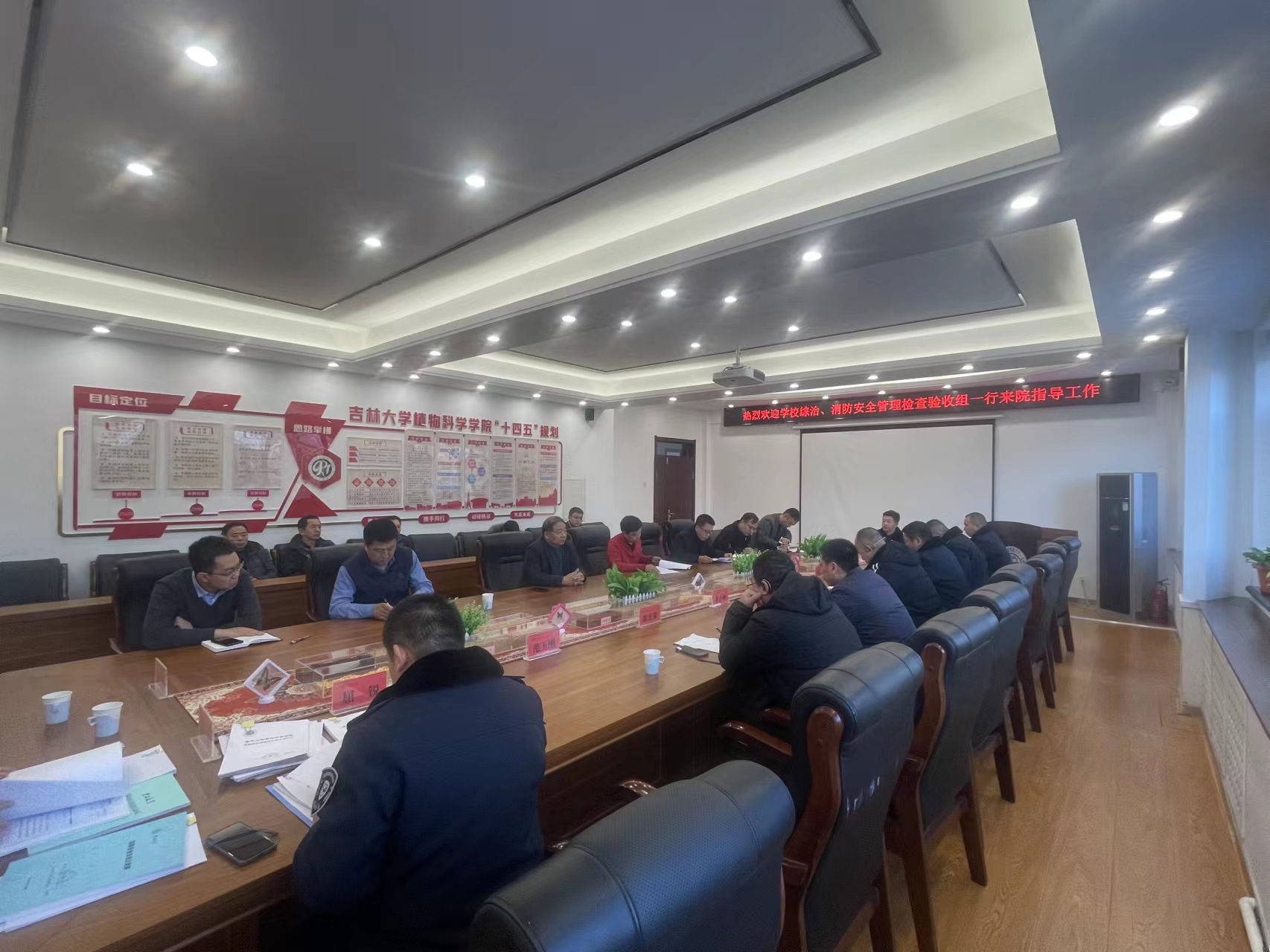 2023年12月20日下午,西区保卫办主任鲁钰锋、西区事务办副主任董志峰以及和平校区后勤服务中心等一行11人,对pa集团官网入口2023年度治安综合治理、消防管理工作进行了验收。pa集团官网入口全体班子成员、党委办公室、综合办公室、实验教学中心等部门负责人参加会议。