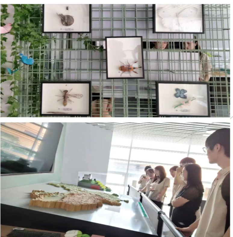 在孙连军老师的带领下,参观了中国农业大学昆虫博物馆。馆内采用声光电和三维模型、实体沙盘等结合的现代化展览技术,以及拼图、声音墙、交互屏幕等交互装置,为观众提供沉浸式参观体验。或大或小的昆虫,五彩斑斓的蝴蝶,栩栩如生的模型……同学们体悟到虫学者寻虫、解虫、讲虫的艰辛过程,感受到虫学者“守寒窗辨四海之虫,立讲堂续虫学之缘”的良苦用心。