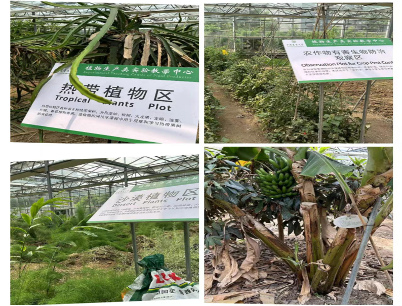 会谈结束后,跟随着孙老师的脚步,吉大师生来到了中国农业大学植物生产类实验教学中心。园区内各种作物种植有序整齐,充满生机活力。在大棚内参观了方盒组拼式立体栽培,链条式立面基质栽培,叠碗式立柱机制栽培等栽培方式,并且参观了大棚内植物资源圃,在人工创造的环境中,热带植物沙漠植物等均茁壮生长。丰富的植物资源、多样的耕作技能……实地参观让吉大生物育种班的同学们更加了解农大创新人才培养实验教学体系,也对专业知识有了更深的理解。
