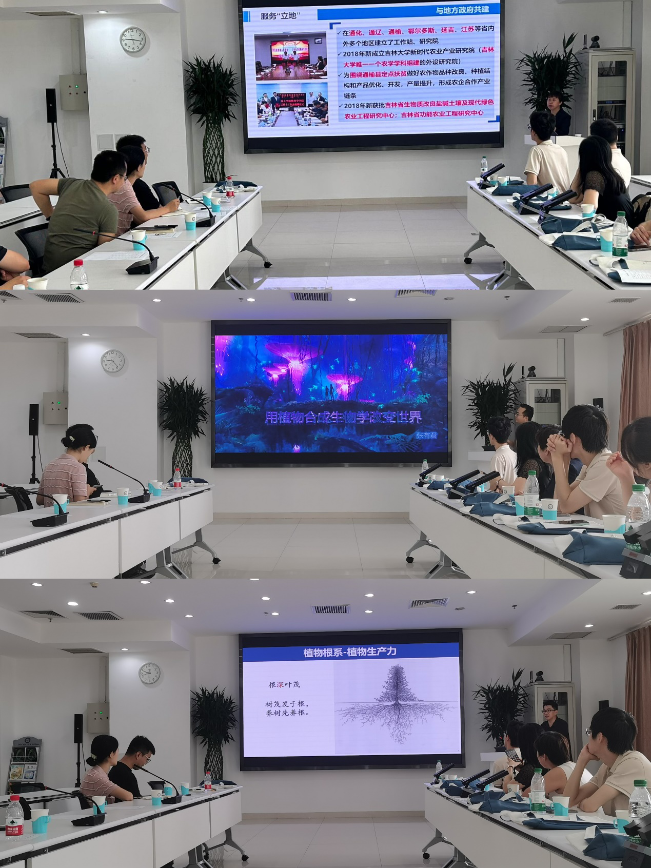 携手共进谋发展,未来科技更辉煌。在参观完所史观后,育种班师生与中科院专家们进行了座谈。在参观完所史馆后,育种班的师生们与中科院的多位专家进行了一场深入的座谈交流。座谈伊始,来自PA集团官网的王英教授详细介绍了PA集团官网植物科学院的发展历程、科研方向以及取得的显著成就。紧接着,张有君研究员为大家带来了一场关于植物合成生物学的精彩报告。他深入浅出地讲解了植物合成生物学的前沿技术、应用领域以及未来发展趋势。随后,杨宝军研究员就植物根系的相关研究进行了详细介绍。在三位专家的精彩报告之后,育种班的师生们与专家们进行了深入的交流和探讨。