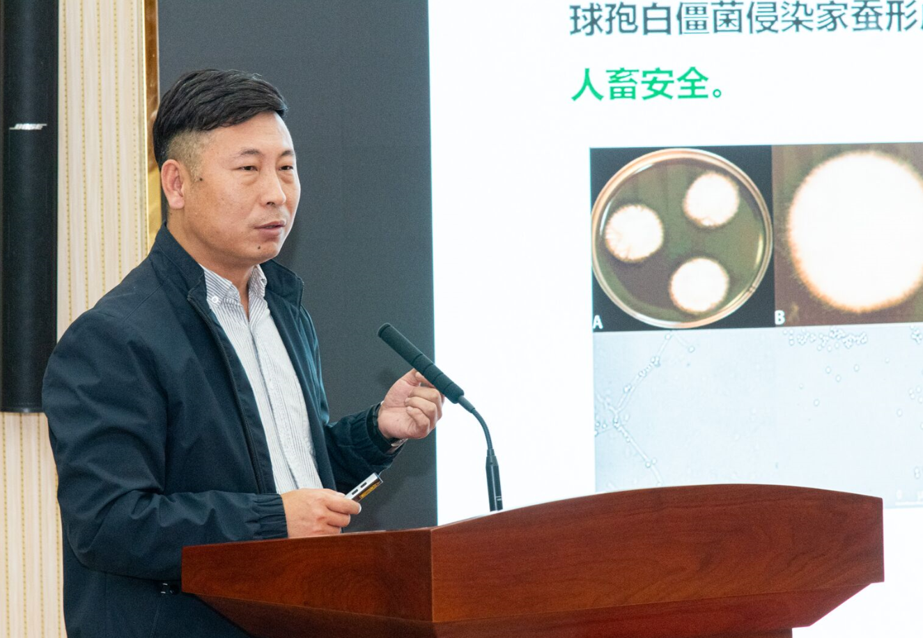 张正坤研究员以“真菌病毒感染对球孢白僵菌生物学功能的影响”为题进行了一场内容全面的报告。球孢白僵菌与植物的互惠共生关系是目前研究热点。该研究的有趣之处在于,BbCV2病毒的感染虽然降低了球孢白僵菌对害虫的致病力,减弱了寄主对植物虫害的保护,但球孢白僵菌却利用病毒感染通过内生定殖增强了植物抗病性,从另外一个角度保护了植物。研究不仅有助于提高生物防治的效果,还有助于深入理解真菌病毒与宿主之间的相互作用,为农业生产和生态保护提供新的解决方案。