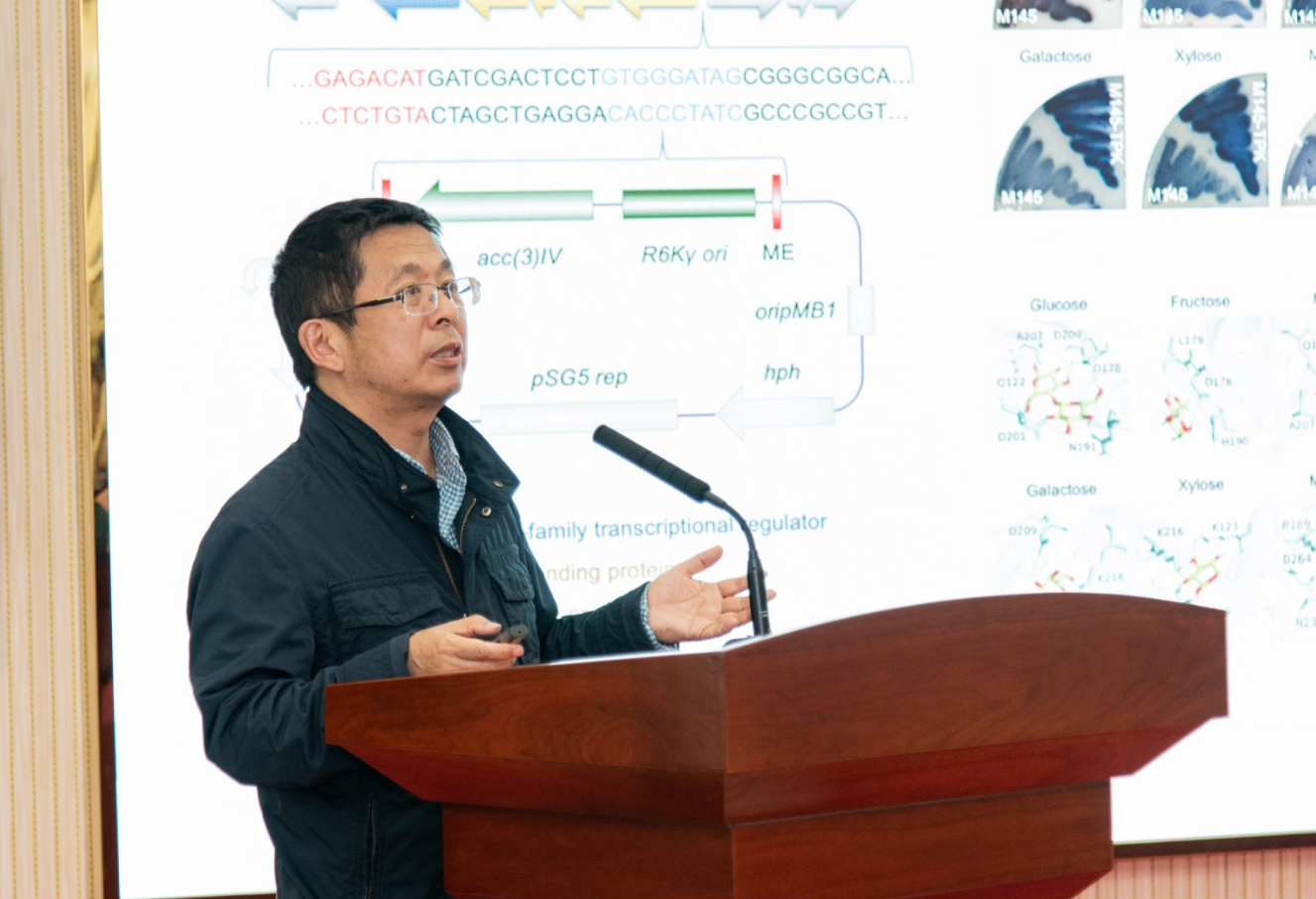 向文胜教授以“链霉菌天然产物农药智能生物制造”为题呈现了一场引人入胜的演讲。向文胜教授从基础认知,包括生物合成调控机制,菌株代谢转换机制;元件支撑,包括转运蛋白元件库前提高效合成模块;时序启动子适配,动态调控元件适配的策略以及高效筛选体外生物传感报告基因方面开展研究。链霉菌天然产物农药智能生物制造的意义在于提高农药的效率和安全性,减少对环境的污染,同时为农业可持续发展提供支持。通过不断的研究和技术创新,智能生物制造有望在未来农业中发挥更加重要的作用。