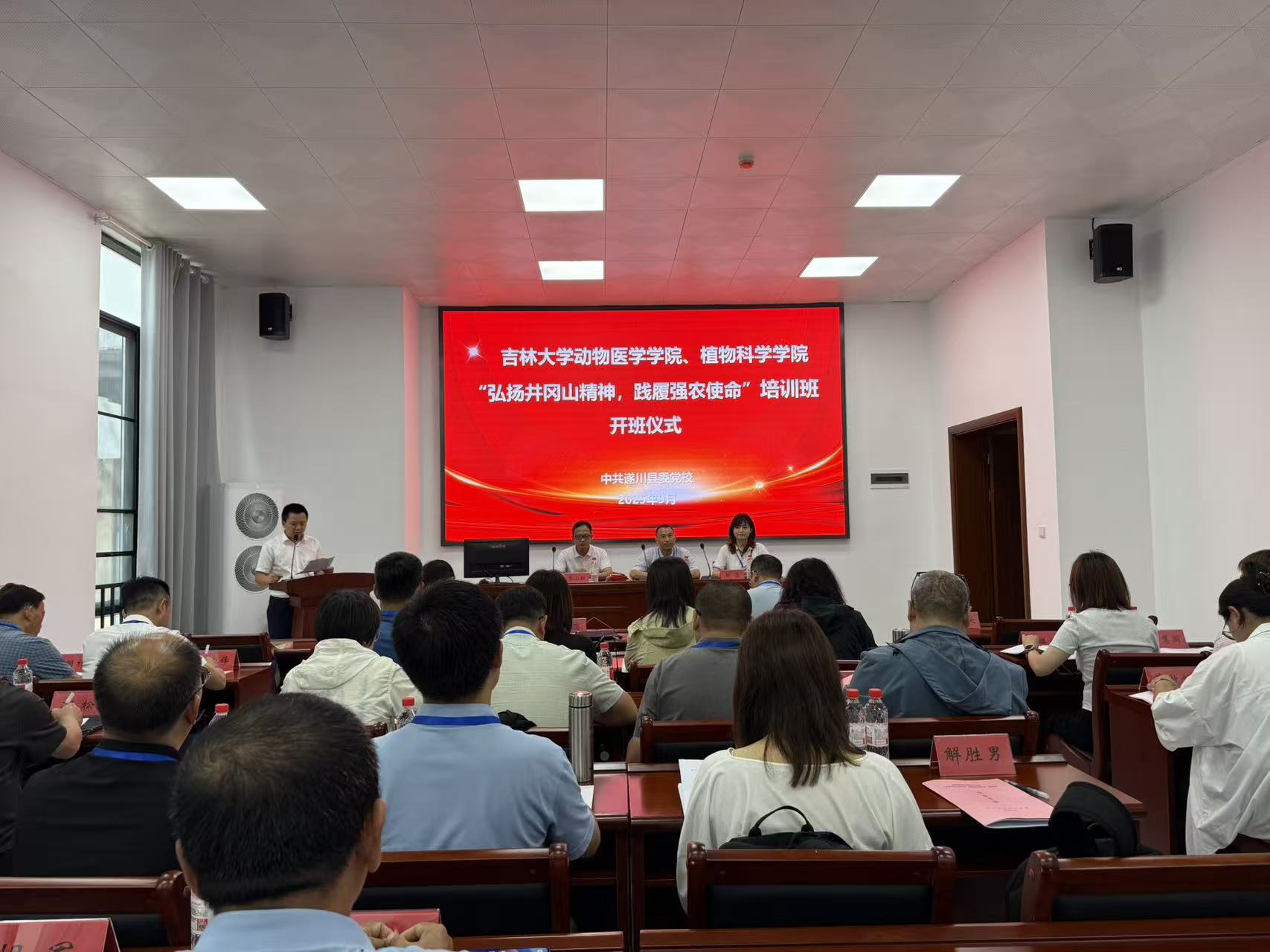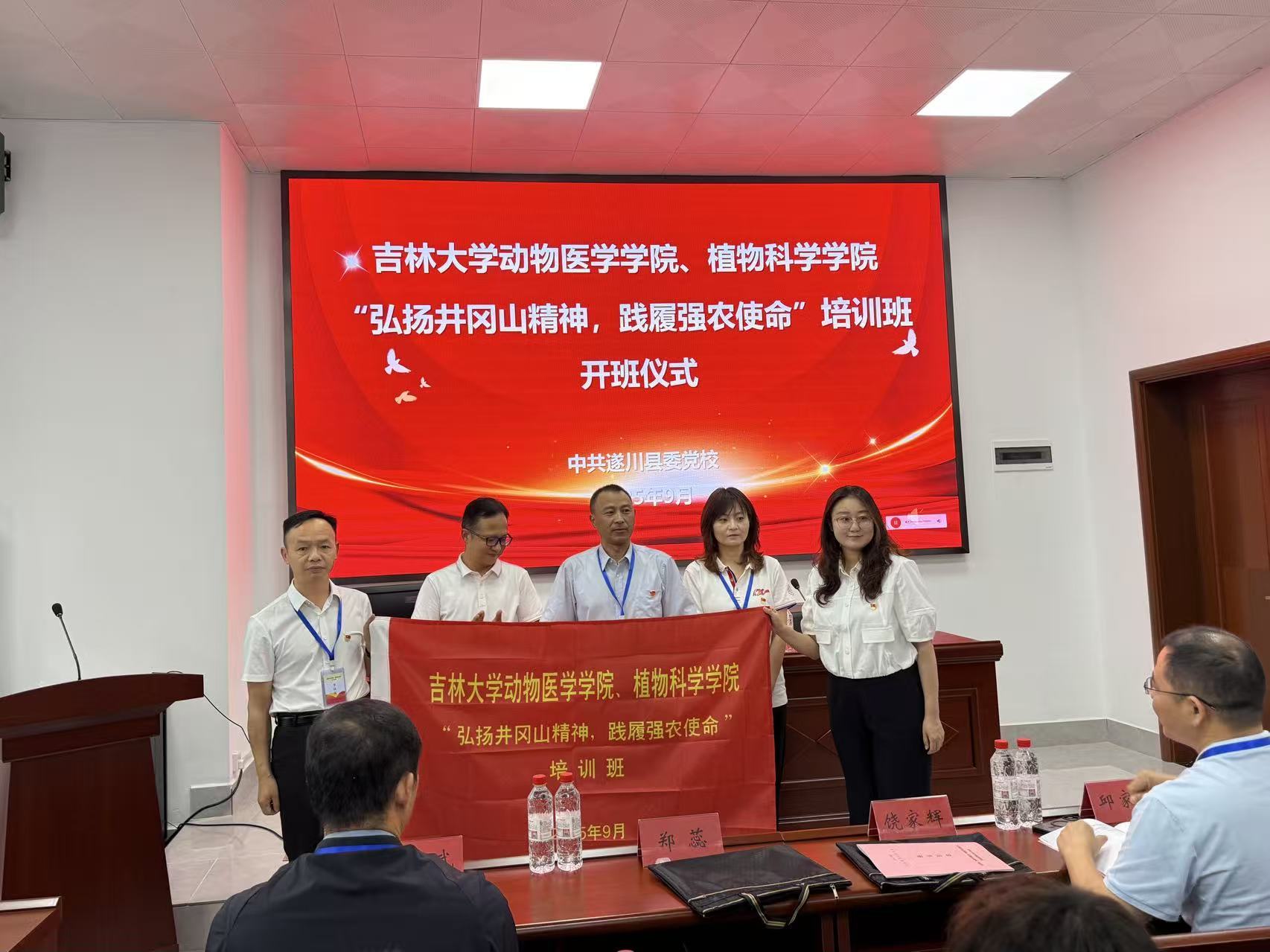 开班铸魂:以使命唤醒初心。9月25日,在遂川县委党校举行开班仪式,遂川县委党校副校长李小松出席仪式致欢迎辞并向本次培训班授班旗。动物医学学院党委书记饶家辉在开班仪式上做动员讲话。中国井冈山干部学院教授李清平以《井冈山斗争与井冈山精神》为题讲授专题党课。