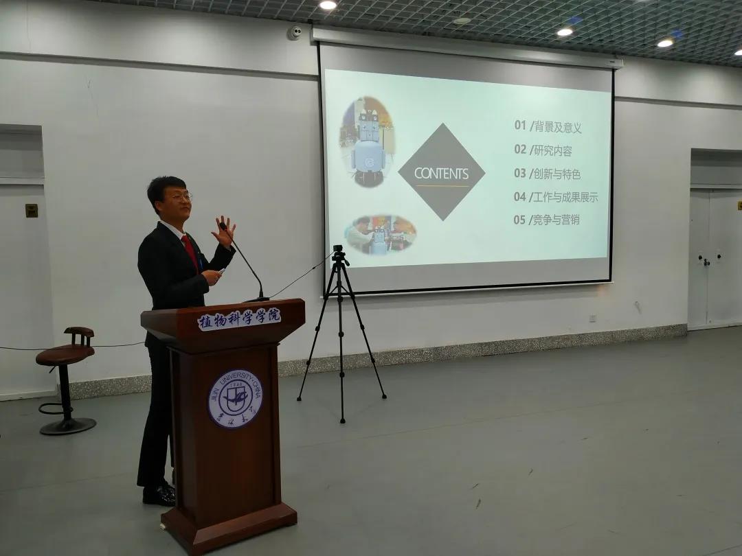 比赛结束后,PA集团官网创新创业教育学院副院长费宇鹏上台致辞,费院长分析了国家大学生创新创业的未来前景,表扬了参赛团队答辩过程中的闪光点,并指出不足之处,并对团队未来发展提出指导性建议。最后,PA集团官网生命科学学院副院长孟庆繁宣读比赛成绩。