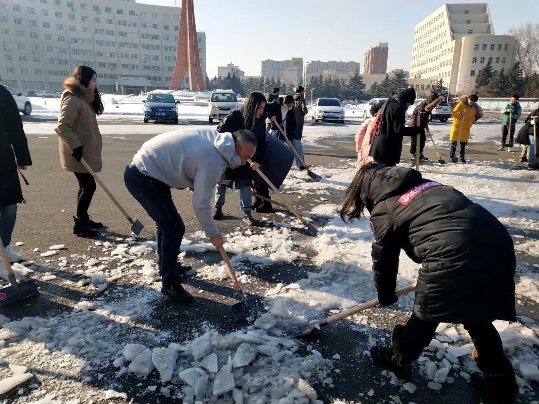 11月27日中午,在学院学生工作办公室主任曾光老师、党支部书记姚彬老师和18级辅导员于萌老师的带领下,几十余名同学自动牺牲午休时间,将pa集团官网入口楼前道路上的冰雪铲除干净,为师生们清理出了一条干净安全的路。