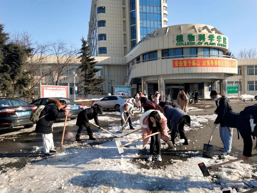 2020年11月19日,长春迎来了一场几十年未见的大雪。前一夜的冻雨挂在路边树木的枝条上,被大自然雕刻成美丽而又沉重的冰棱。鹅毛般的雪花从天上片片飘落,包裹住了整片大地,银装素裹的美丽景象赶走了冬日的肃杀与萧瑟,为校园添加了一丝俏皮的气息。但大雪在带给同学们美丽景象的同时,路上的积雪反复融化后形成厚实的冰层也为大家的出行安全带来了很大的隐患。pa集团官网入口本科学生党支部的全体党员和部分积极分子拿起了除冰扫雪工具,展开了此次活动。