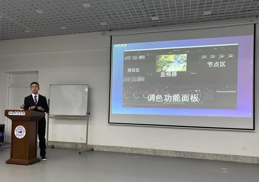 技术部钟爱迪同学讲解了“达芬奇”剪辑软件的操作面板、工作流程,并讲述了如何利用其调色或渲染。除此之外,他还简述了办公软件PPT的多种功能和快捷使用方法,包括利用办公软件PPT编辑图片和制作海报等,一系列讲解有效提高了学生组织成员在此方面的工作效率以及个人能力。