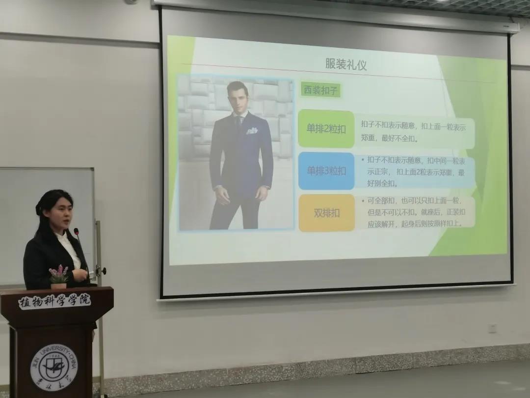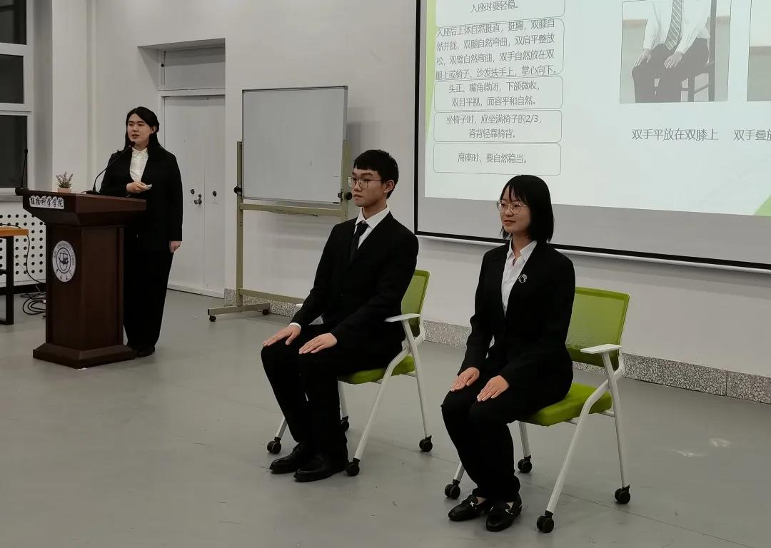 秘书处吕众孚同学向大家讲解了服装及行为礼仪的要领并现场示例,形象生动、实用易懂。同学们对标准的礼仪姿态有了初步的了解与掌握。身为学院团委学生组织中的一员,我们应在生活中充分发挥带头作用,保持良好的仪态与礼节,展现当代青年学子积极向上的精神风貌。