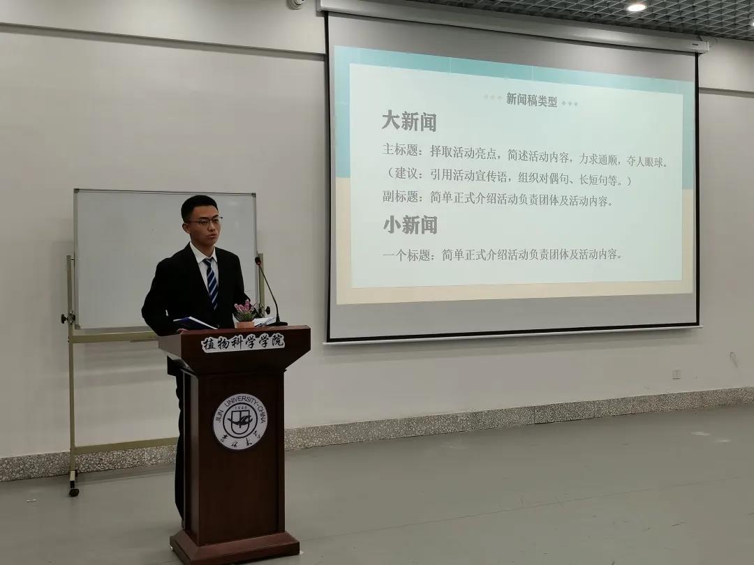 新闻部任书乐同学从新闻要素、叙述详略、人称敬语等方面做出了新闻稿的标准格式讲解,并且针对不同类型的活动强调了所写新闻稿的侧重点,在标题、正文以及各词句斟酌上都深入探讨。他以pa集团官网入口2020年迎新工作新闻稿为例讲解了新闻稿的撰写格式及注意事项,条理清晰,使同学们豁然开朗。