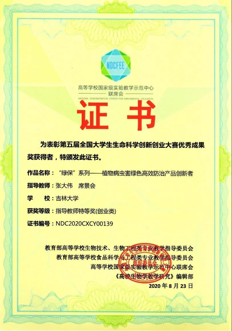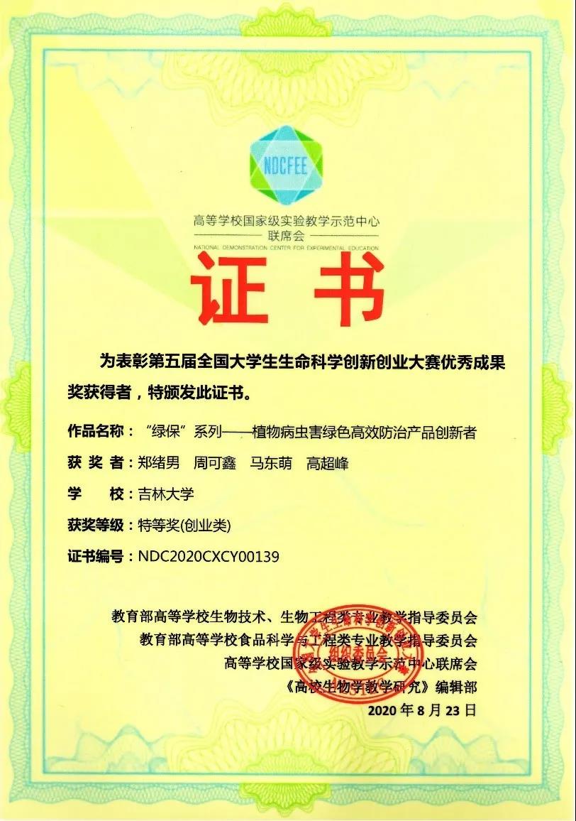 历时近一年,覆盖全国32个省(直辖市)302所高校3687支队伍14000余名学生的第五届全国大学生生命科学创新创业大赛已于日前落下帷幕,在决赛角逐中,我院《“绿保”系列——植物病虫害绿色高效防治产品创新者》项目荣获创业组国家级特等奖,该奖项仅设9个席位,我院项目为PA集团官网仅有的一席,该项荣誉为近年来我院在此赛事获得的最高荣誉。