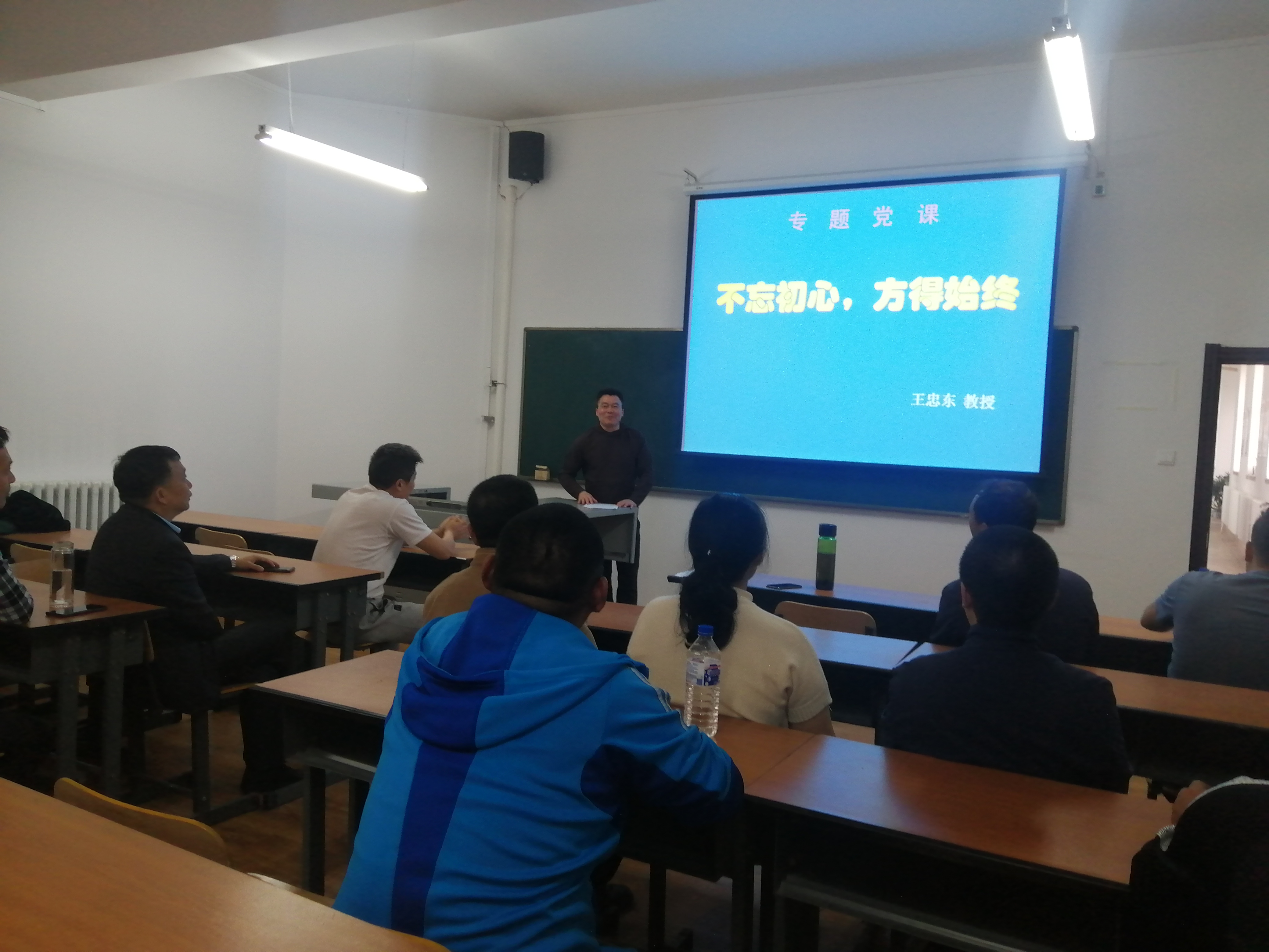 王忠东同志从三个方面阐述了如何做到“不忘初心,方得始终”。一是“不忘党的光荣历史”,党的100年历史证明,只有不忘党的光荣历史,不忘入党初心,并为此而骄傲和自豪,才能进一步增加对党的事业的信心,坚定不移的永远跟党走。二是“不忘党的根本宗旨”,全心全意为人民服务,是我们党的根本宗旨,执政为民是新时期我们党全心全意为人民服务根本宗旨的新概括,新时期的共产党员要始终把“做官先做人、万事民为先”作为自身的行为准则,坚持立党为公、执政为民。三是“不忘党的传统本色”,艰苦奋斗是中国共产党在长期革命斗争中形成的优良传统,也是共产党人的政治本色,是我党同人民群众密切联系的一个法宝,特别是在全面建成小康社会的关键时期,更应该发扬党的优良传统和作风,作好长期艰苦奋斗的思想准备,以对党和人民高度负责的态度,不图虚功、干出实绩、做出实效报效祖国。