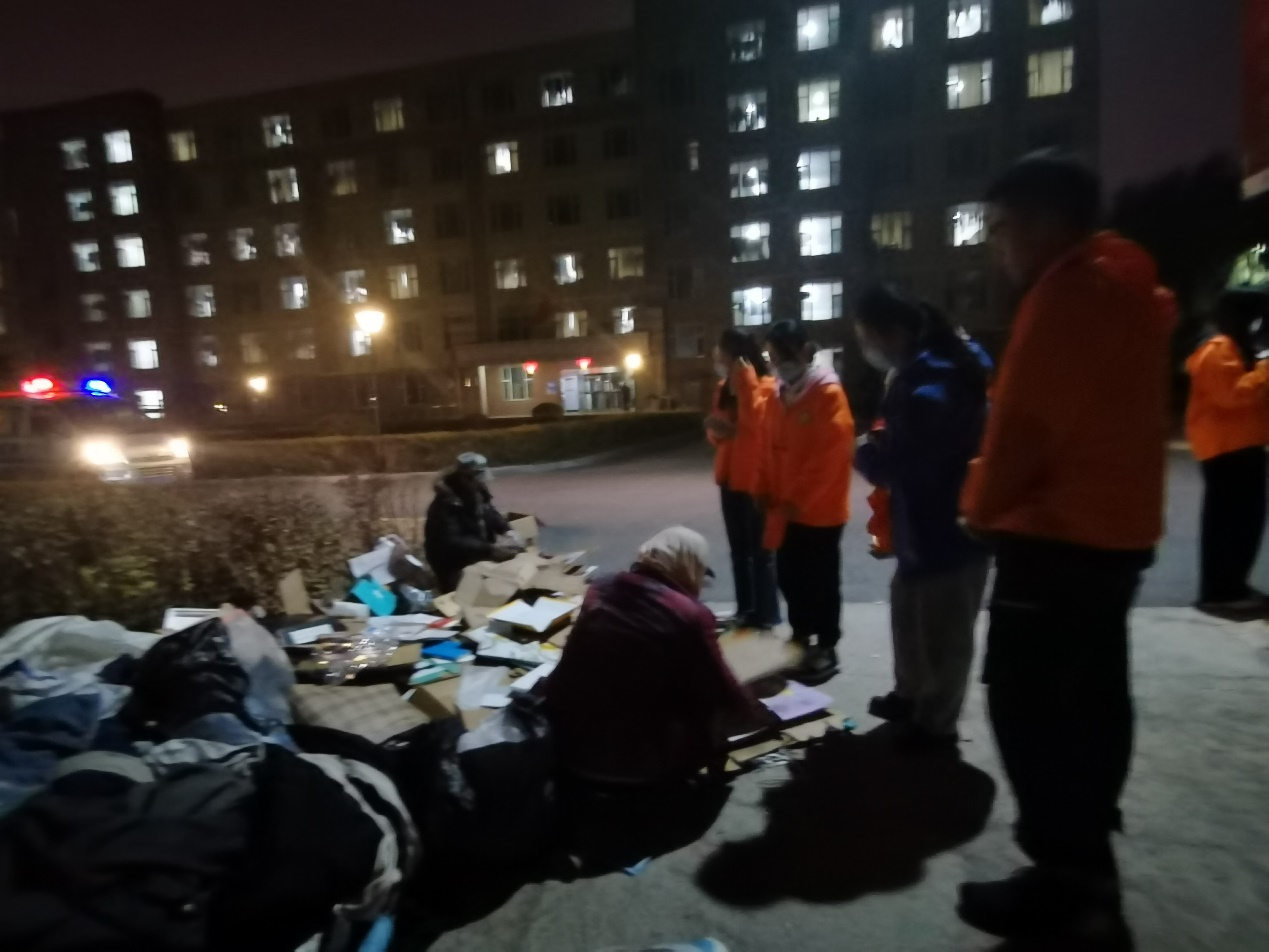回收工作结束后,志愿者们并没有马上离开,而是将收得的瓶子计数整理,整齐地放于二、三公寓楼间,方便专门回收旧物的工作人员回收并将这些物品用于后续的公益工作。