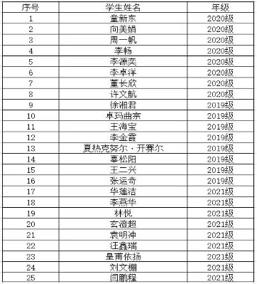 根据《PA集团官网本利学生国家动志奖学金评审办法》有关要求,经过学生申报、pa集团官网入口奖助学金评审领导小组评定,拟推荐以下25名同学为pa集团官网入口2021-2022学年国家园志奖学金获得者: