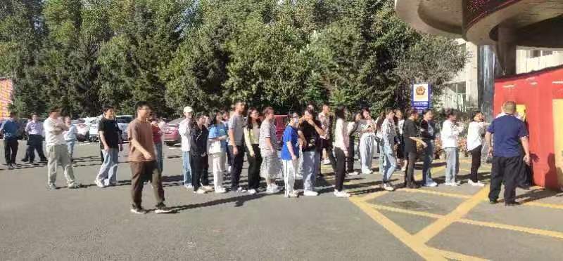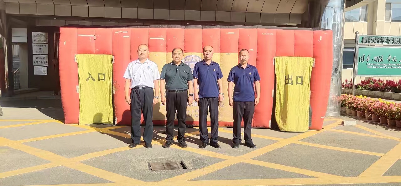 讲座结束后,全体师生来到学院楼前三环广场进行提前准备好的气垫房实景逃生演练,两或三人一组进行,要求在二十秒内从出口安全逃出。