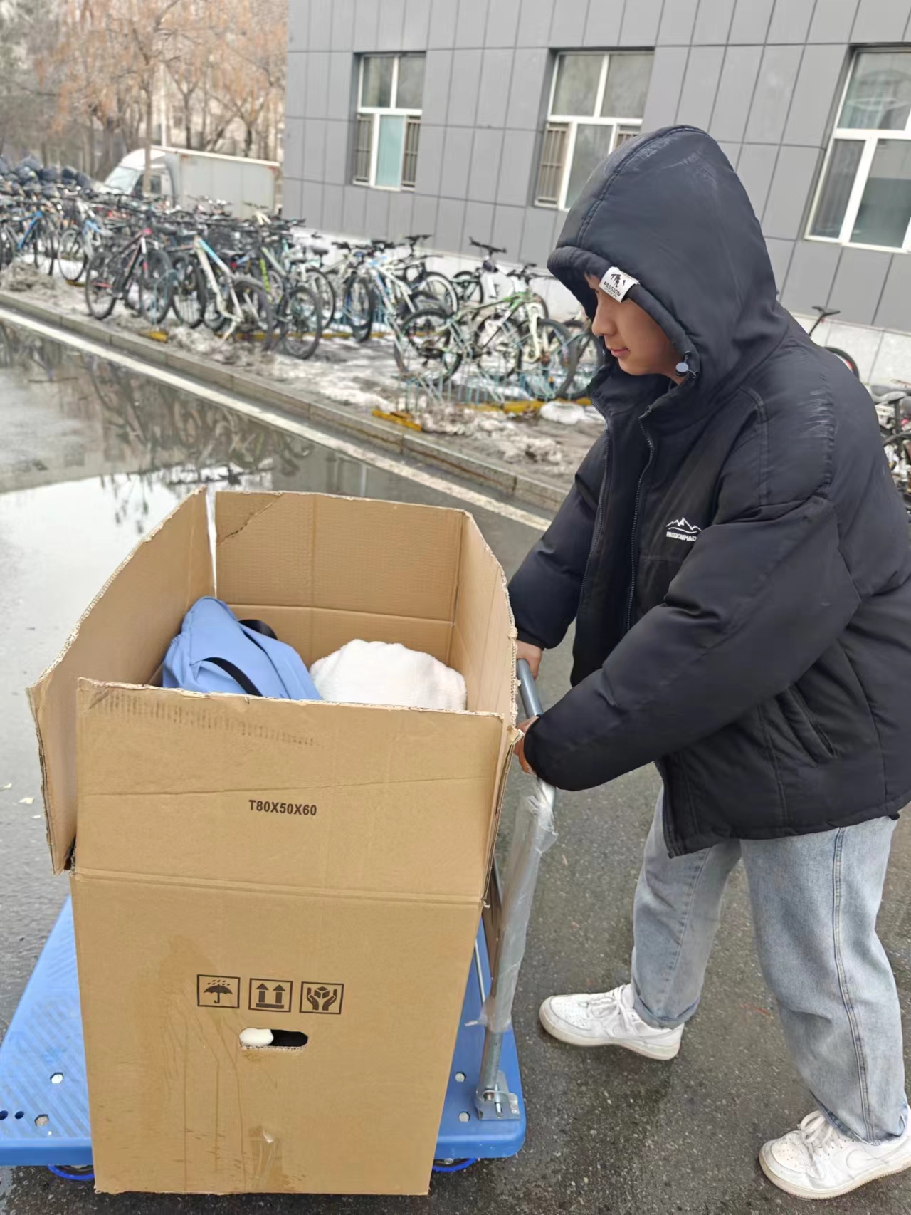 活动开始前夕,我院学生会通过线上线下会议等形式,制定活动方案,确定活动时间、活动地点等,采买纸箱,绘制宣传海报,制作活动报名表等,为活动顺利开展做好充足的准备,同时也为活动圆满完成打下坚实的基础。旧衣物捐赠活动正式开始后,学院学生组织分别在我校和平校区和中心校区两地收集旧衣物。志愿者们通过走寝、设置捐赠点相结合的方式收集同学们捐赠的旧衣物,广大师生积极踊跃地献爱心、送温暖。衣物收集分类后,一袋袋登记打包的旧衣物承载着同学们的爱心与善良,志愿者们细心地用推车将收集到的旧衣物运送到指定地点,等待运送车辆的到来。将这一份份沉甸甸的爱心发往孩子们手中,让旧衣物被赋予新的意义,向需要的人传递爱的温度。
