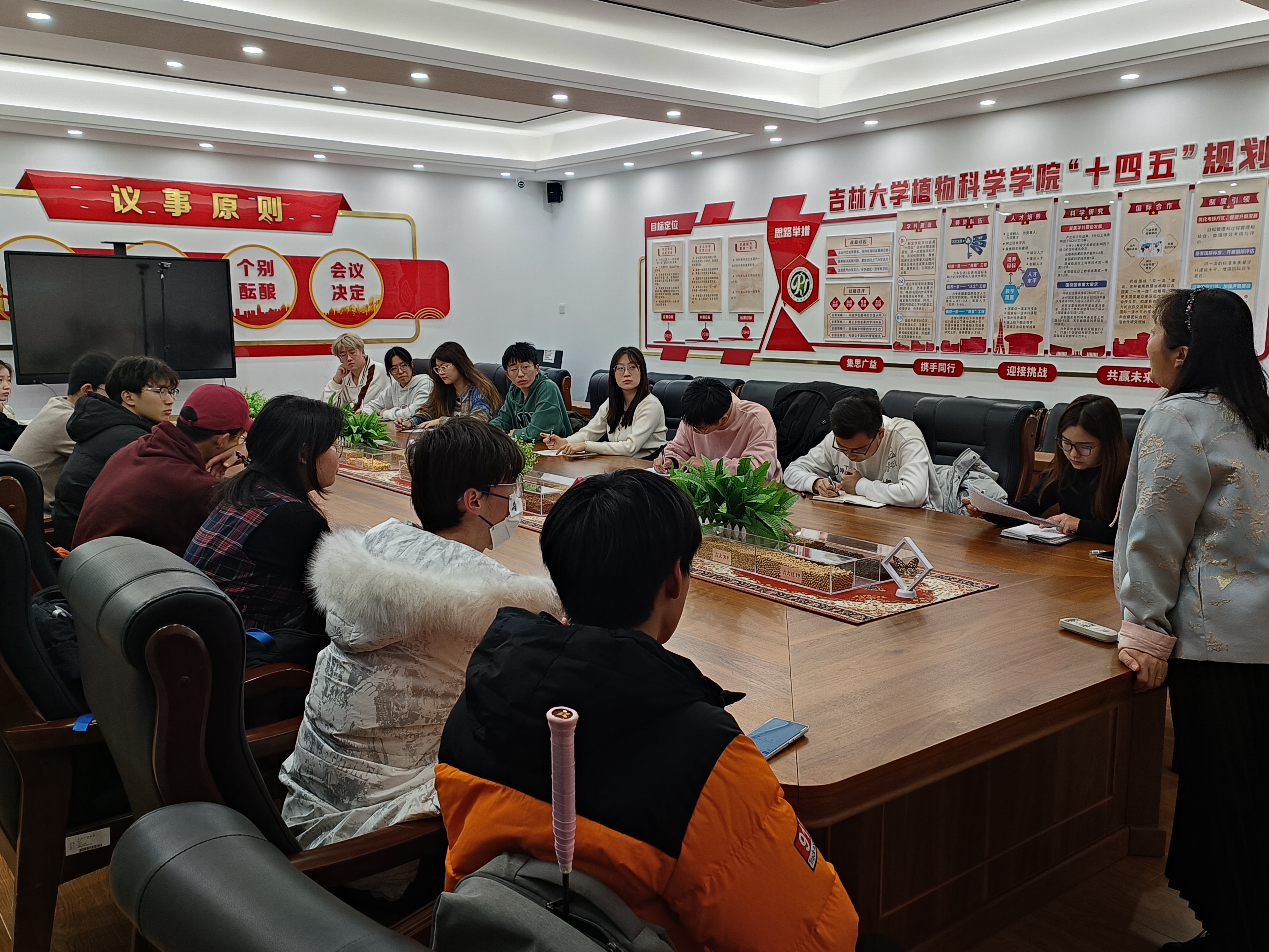 会上,师生聚焦同学们的日常学习生活,在课业、升学、就业等多个方面展开了深入而广泛的交流,各班班长、团支书踊跃发言,依次阐述在日常学习、工作、生活中所关注到的班级中存在的问题。会议整体氛围融洽,针对提出的问题,高梦玉与班长、团支书进行讨论沟通,及时了解学生诉求,更好地助力学院学生成长与进步。