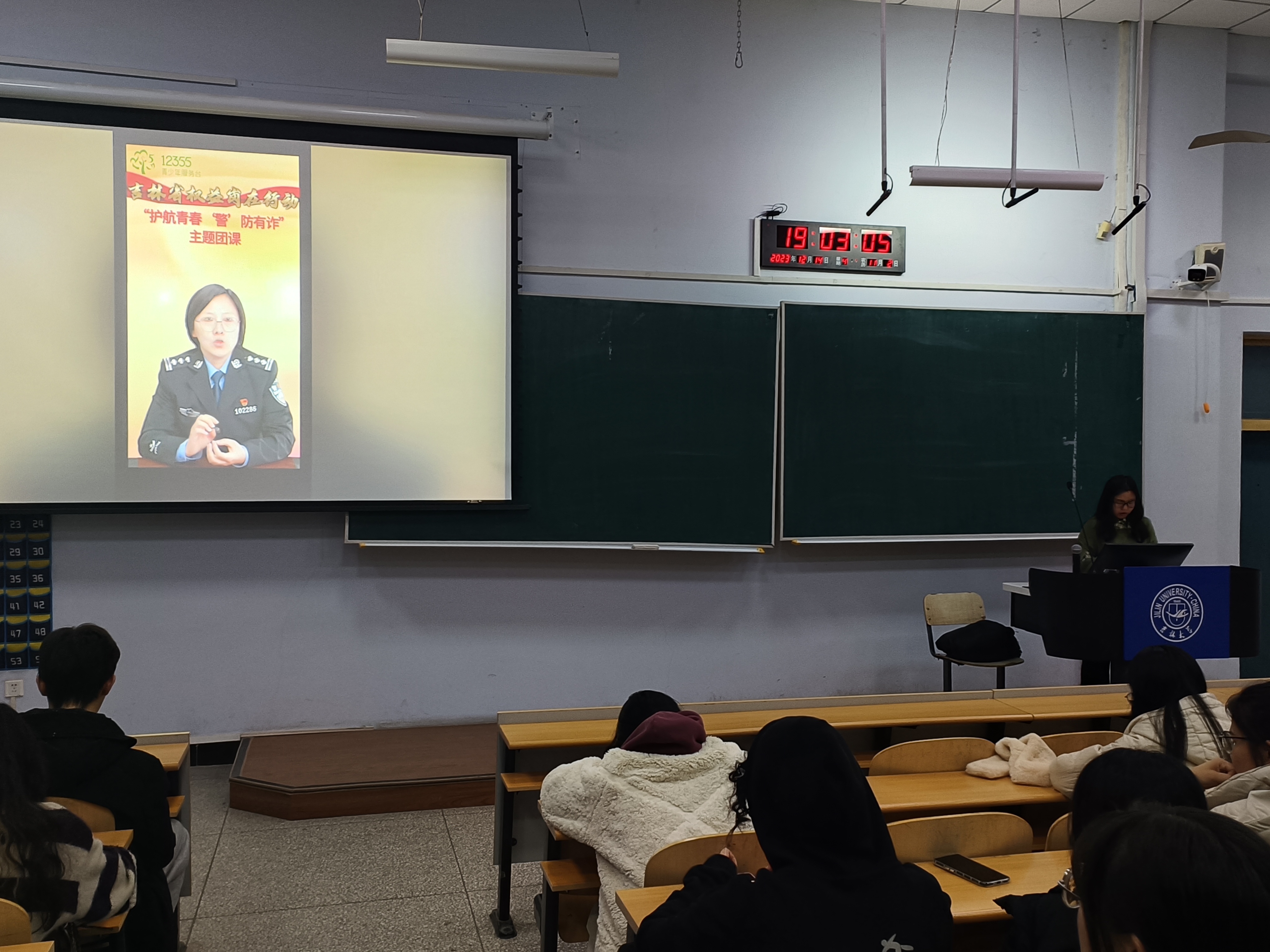 会后,全体同学集中观看了由共青团吉林省委联合相关创建单位共同举办的“护航青春 ‘警’ 防有诈”主题团课直播,提高防诈意识,远离电信网络诈骗。