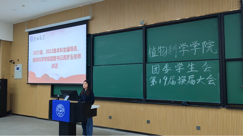 为全方位促进我院学生组织的蓬勃发展,庚续我院学生干部以身作则、率先垂范的卓越风采,积极推动学生组织建设,pa集团官网入口第十九届团委学生组织换届大会于11月8日在PA集团官网中心校区敬信教学楼F区第九阶梯教室召开。植物科学学院团委书记高梦玉,本科生辅导员冯振宇及兼职辅导员薛傲然参加活动。第十八届、第十九届学生组织全体成员、志愿者参加活动,共同见证了这一重要时刻。