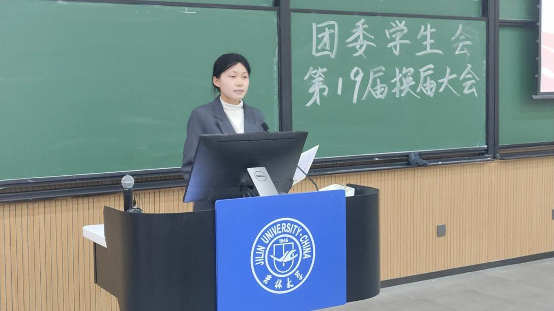 第十九届团委学生会执行主席邢心茹代表新一届学生组织进行工作展望,规划了未来一年的工作目标和计划。