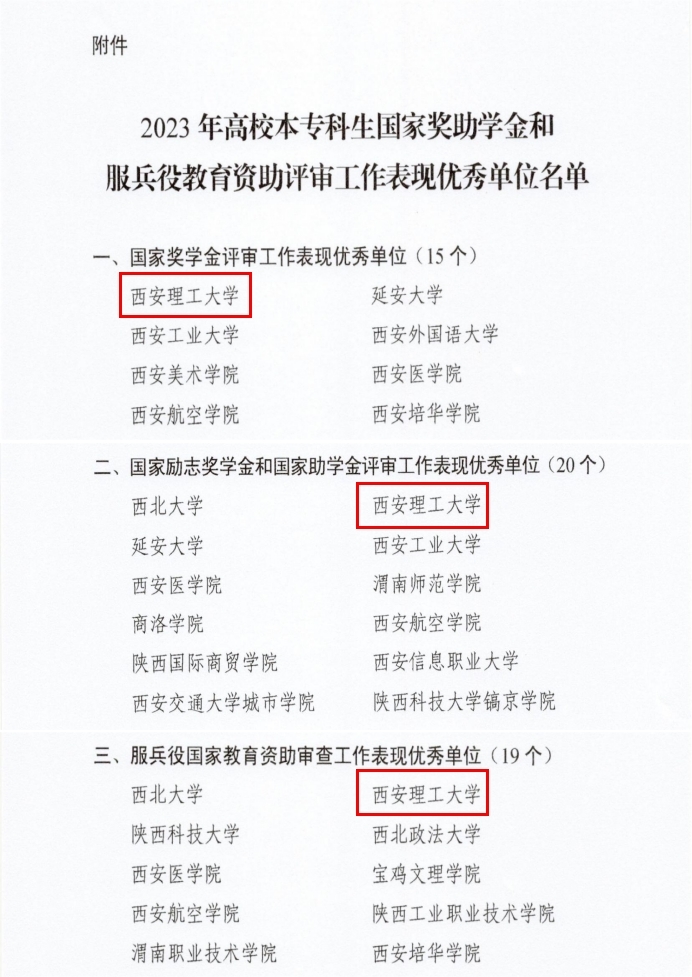 近日,陕西省教育厅印发了《陕西省教育厅办公室关于对2023年高校本专科生国家奖助学金和服兵役教育资助评审工作表现优秀单位进行表扬的通知》,beat365官网分别荣获本专科生国家奖学金、国家励志奖学金和国家助学金、服兵役国家教育资助评审工作“表现优秀单位”,为全省仅有的5所“全优”院校之一。